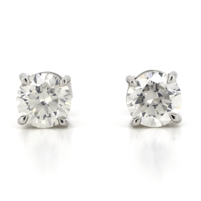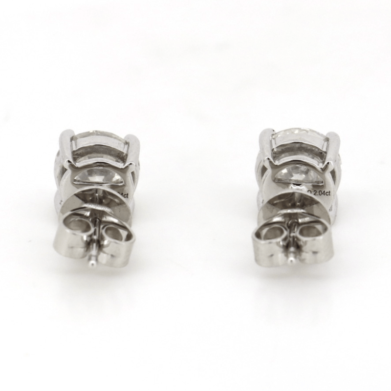 14K WHITE GOLD, 2.04CT TDW DIAMOND, SOLITAIRE STUD EARRINGS.
