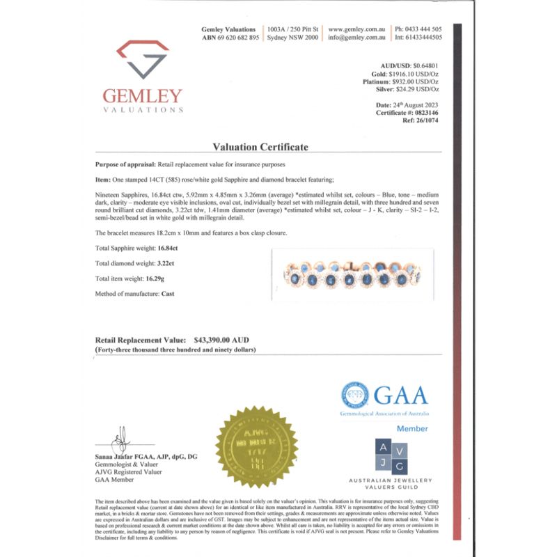 Jewellery Valuations Provided By A Third Party Professional Not Directly Associated With Lloyds Auctions at AUD $43,390.00