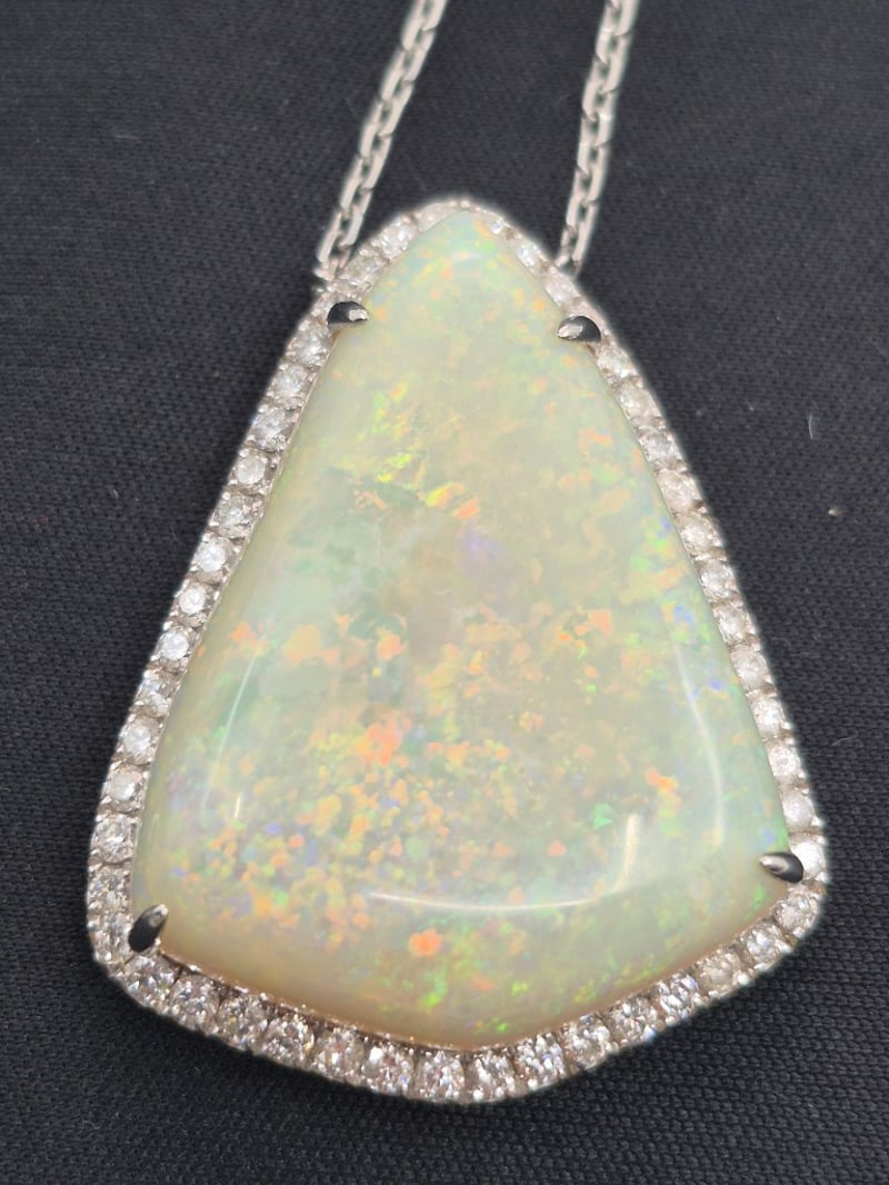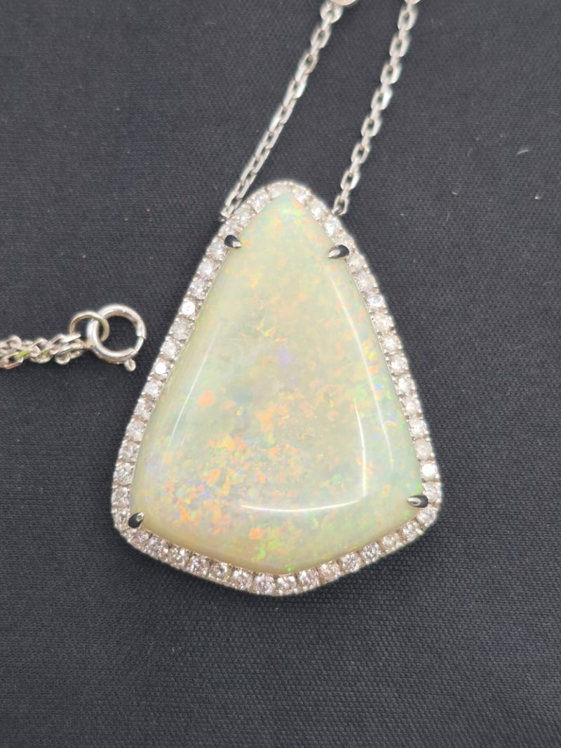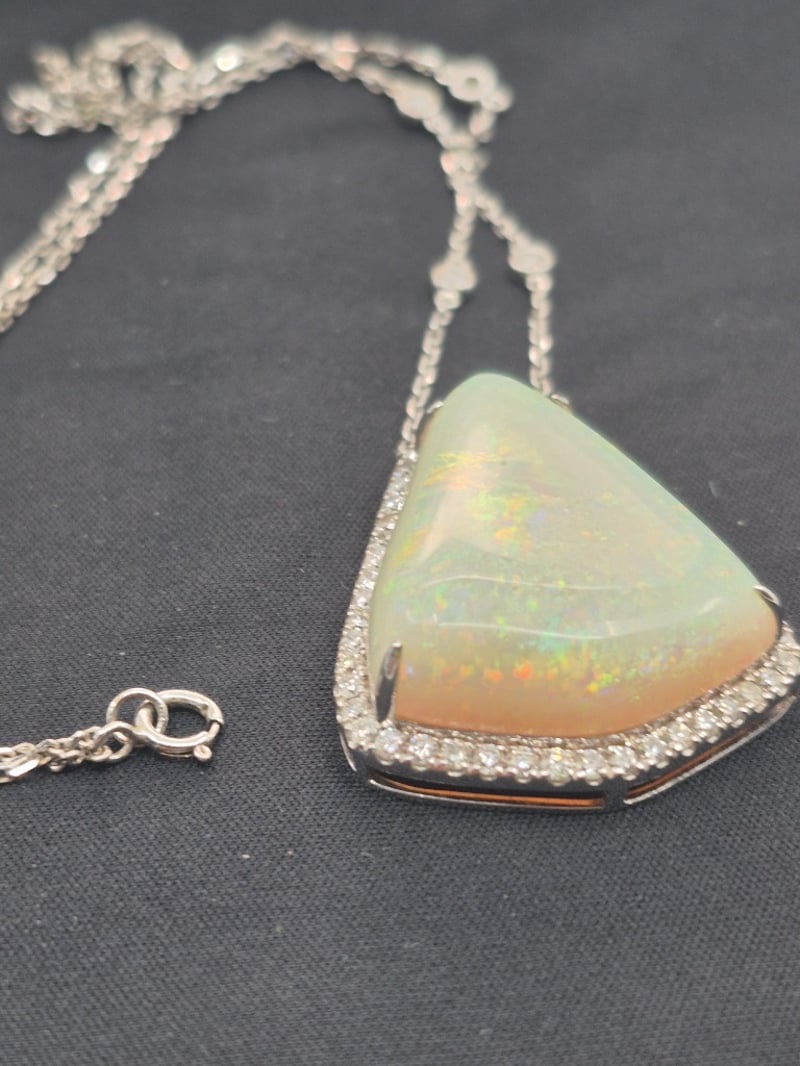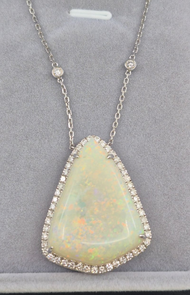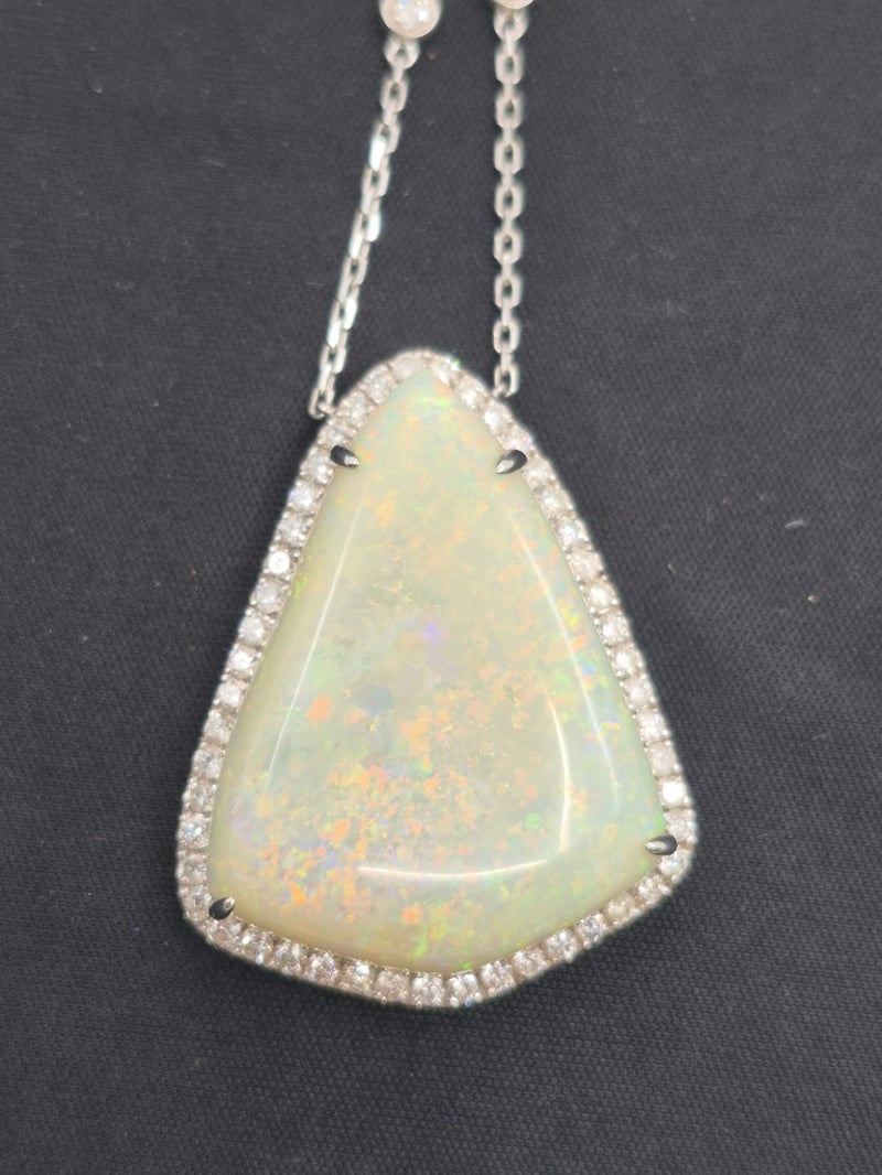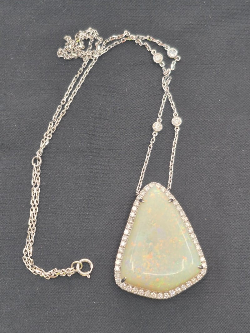 14K WHITE GOLD OPAL AND DIAMOND NECKLANCE