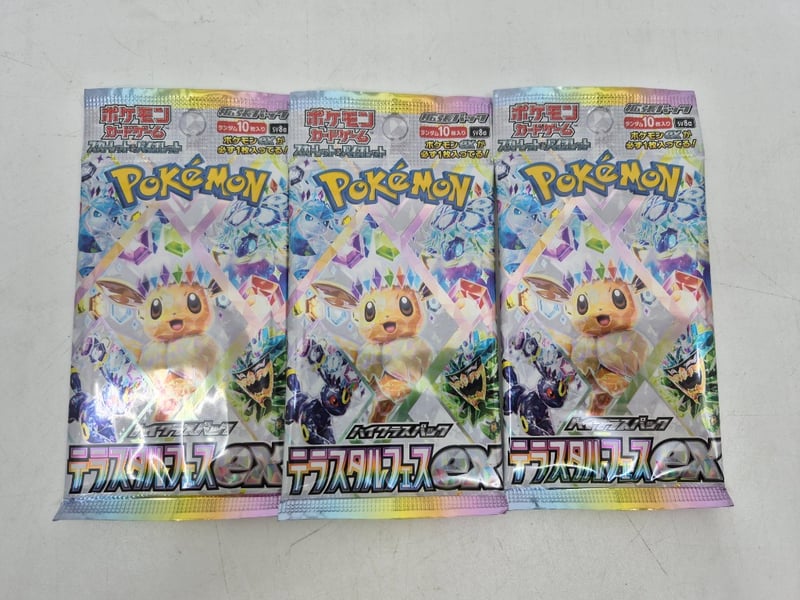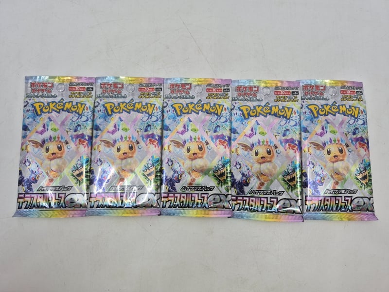 JAPANESE POKÉMON CARDS - SCARLET & VIOLET TERASTAL FESTIVAL EX BOOSTER PACKSItem Size: Height: 13cm, Width: 6cmCollection Of 5 Sealed Japanese Pokémon Trading Card Game Booster Packs From The Scarlet & Violet Ex Expansion.Condition: Good - Refer To Images9A586275+2