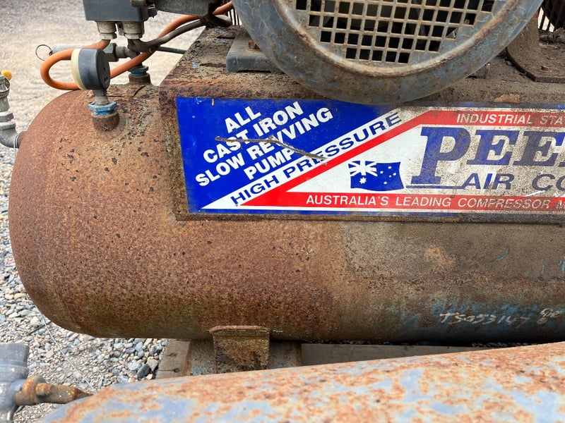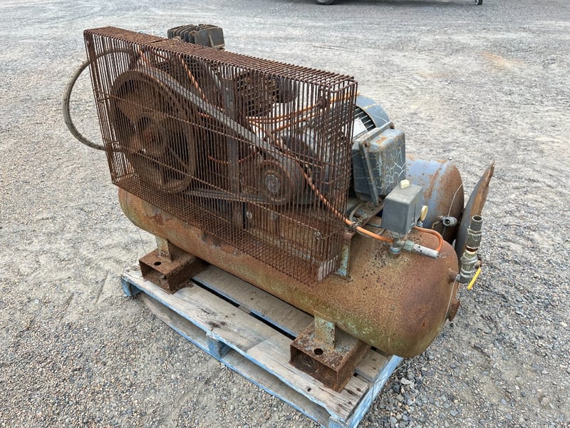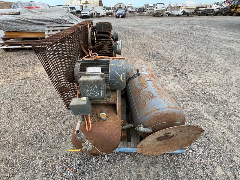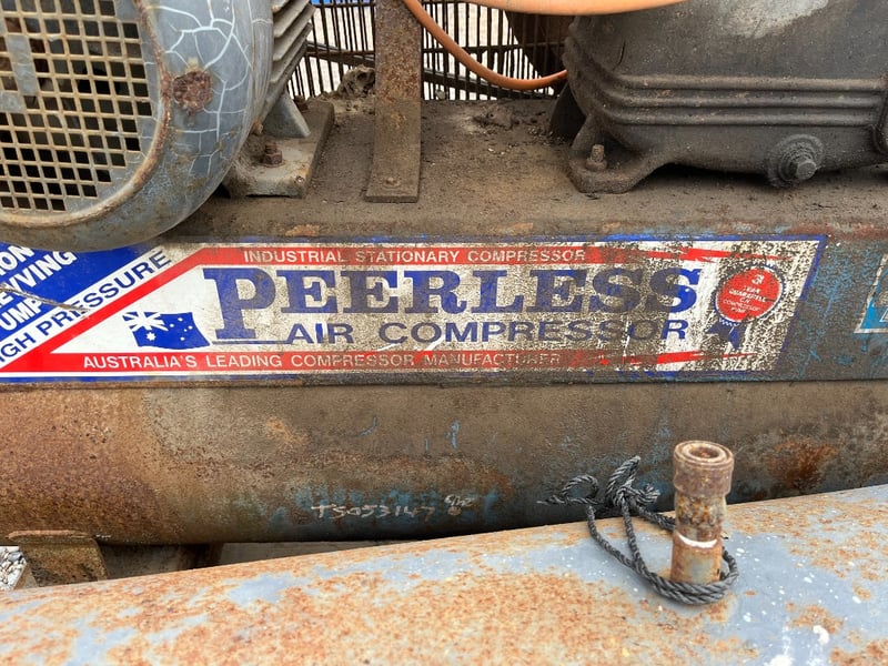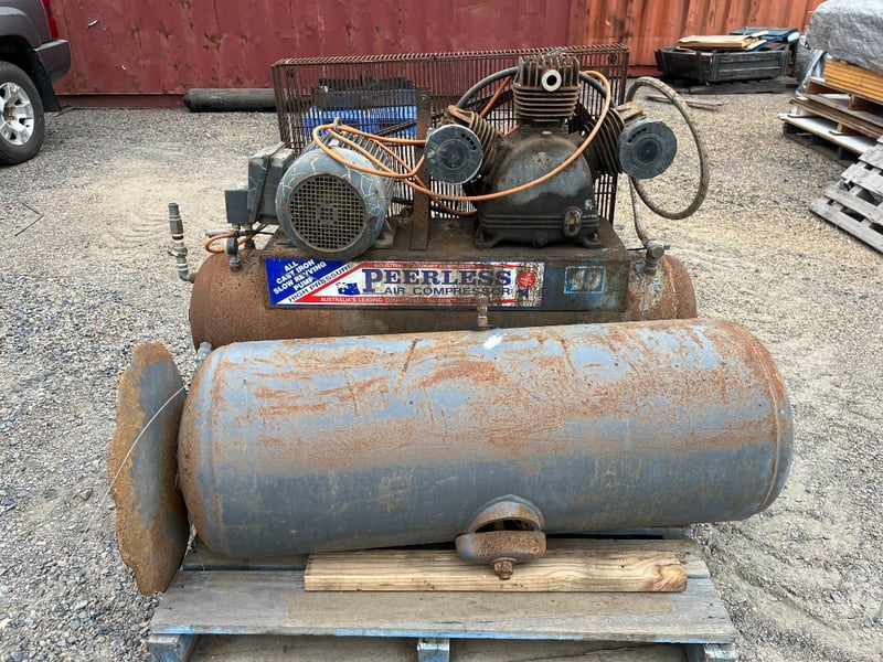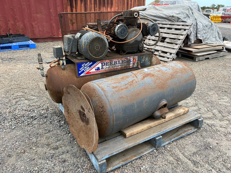 Description: Large Peerless air compressor with air tank, has a 3 phase induction Teco motor - (Serial number: 20509-9jj)