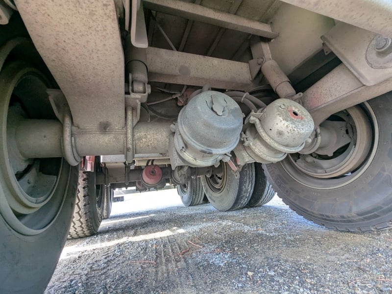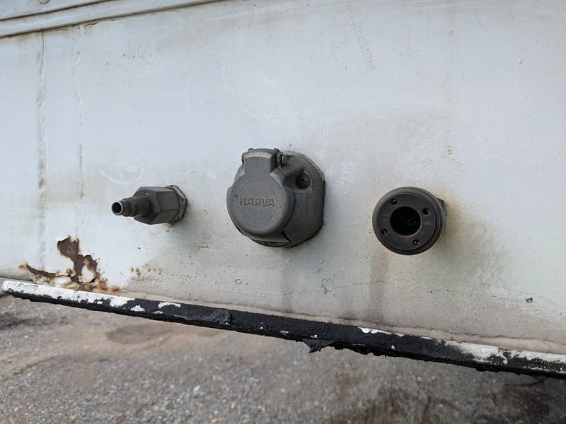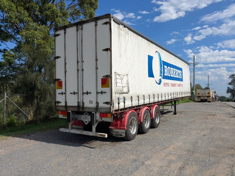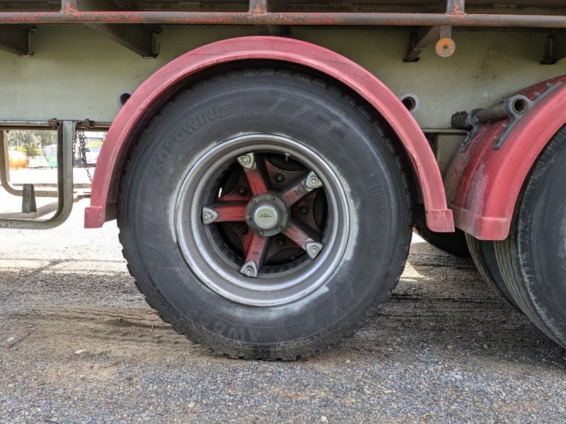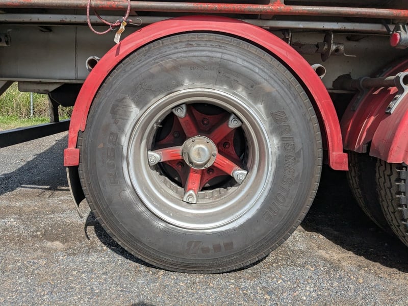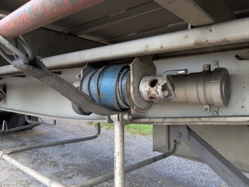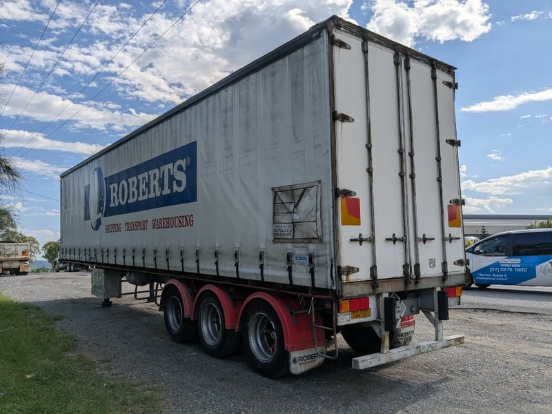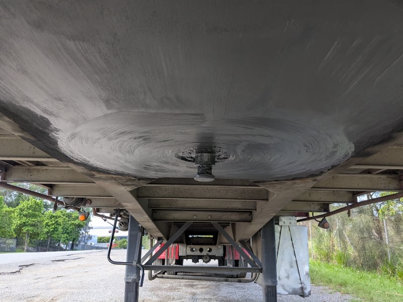 Description/Extras: The trailer sits on three rear axles (tri-axle setup), Landing legs are supporting the front of the trailer, Steel flooring, under trailer took box, wash tank,