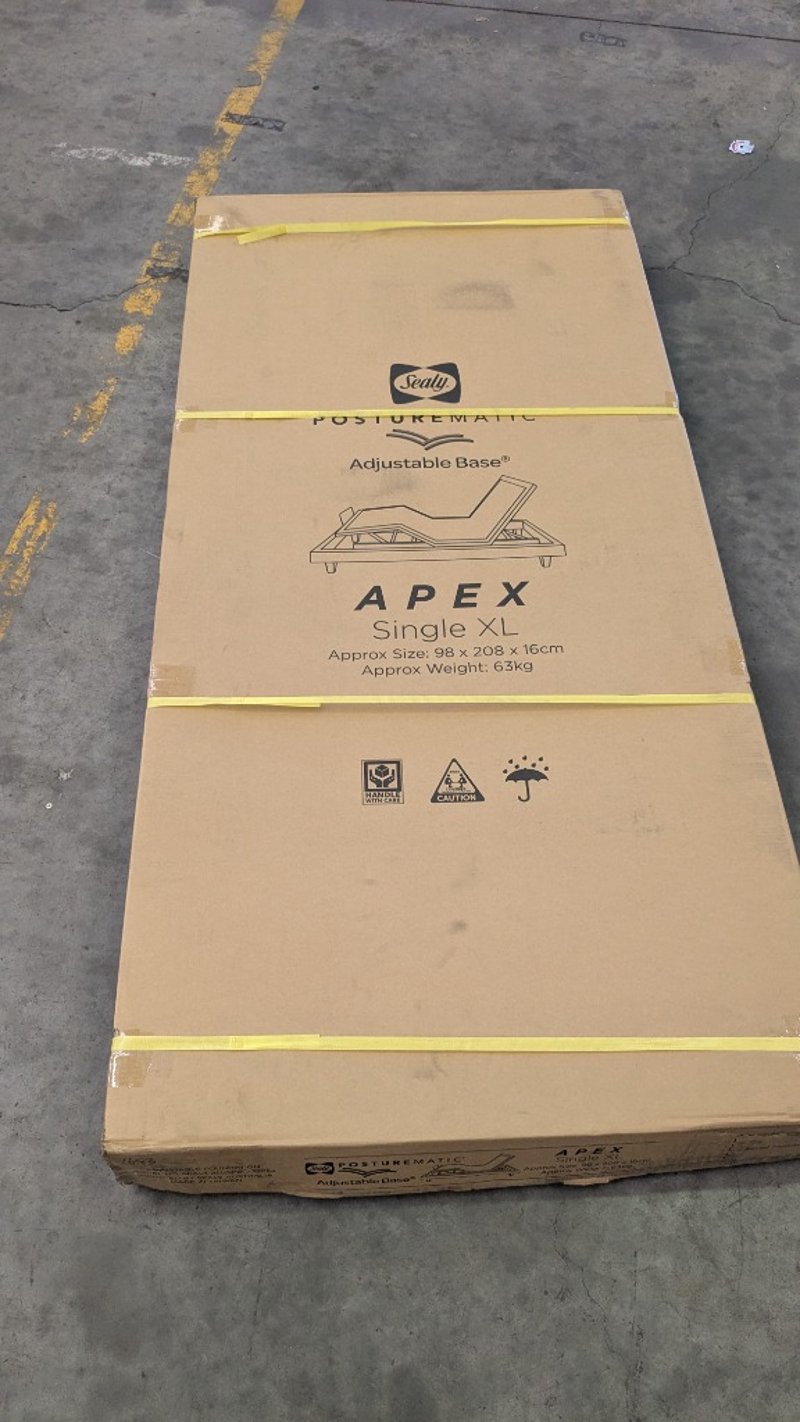 RRP $2799, Sealy Posturematic Apex Adjustable Base - Long Single, Model: 0001139657 Size - Long Single Product Type - Adjustable Bed Bases Brand - Sealy Colour - Charcoal Frame Material - Steel, Timber Upholstery - Polyester , Polyurethane (PU) Weight (kg) - 63 Product Height (cm) - 14 Product Width (cm) - 91.5 Product Depth (cm) - 203 Assembly Type - Assembly Required