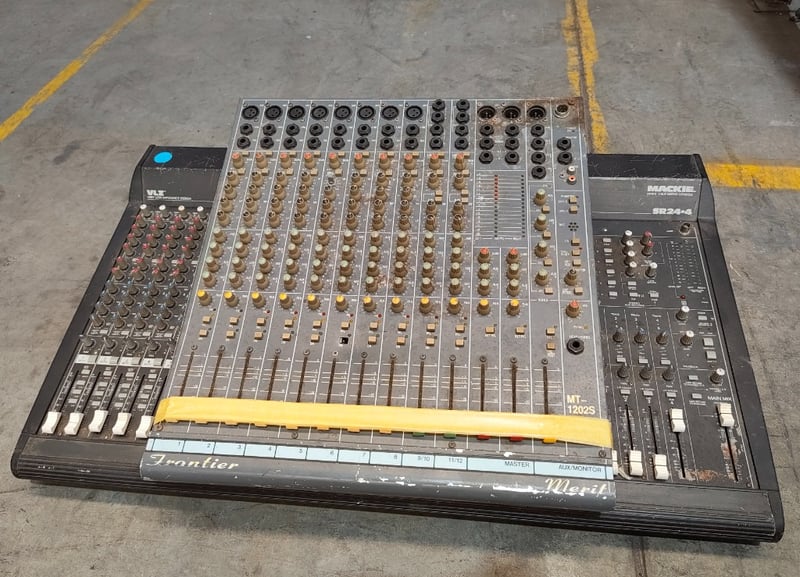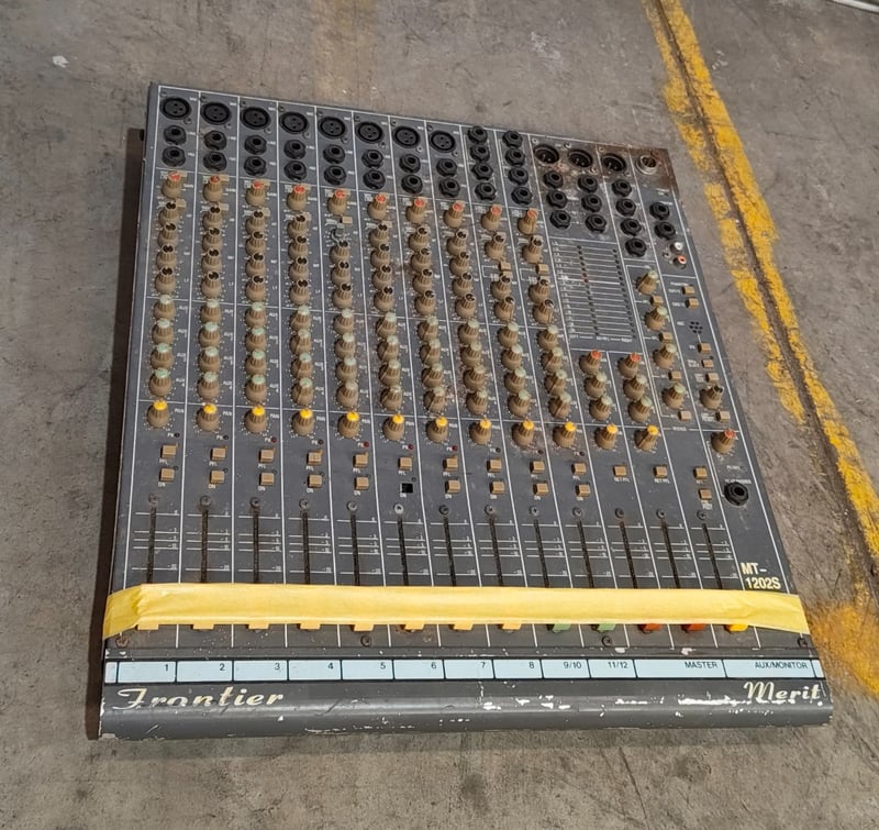 Assorted items including: Frontier Merit MT-1202S Mixing Desk Mackie SR24.4 4-Bus Mixing Console Note: working condition unknown, no power cables with items, items in used condition Sold as lot