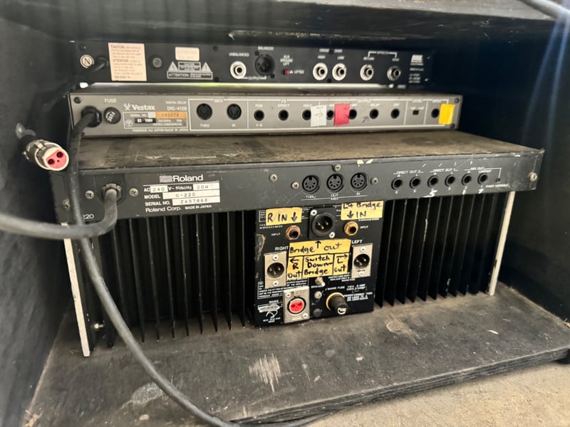 Assorted music production equipment Perreaux power amplifier Roland u-220 sound module Dig 412b vesta fire digital delayBBE 383 bass pre ampNote: working condition unknown