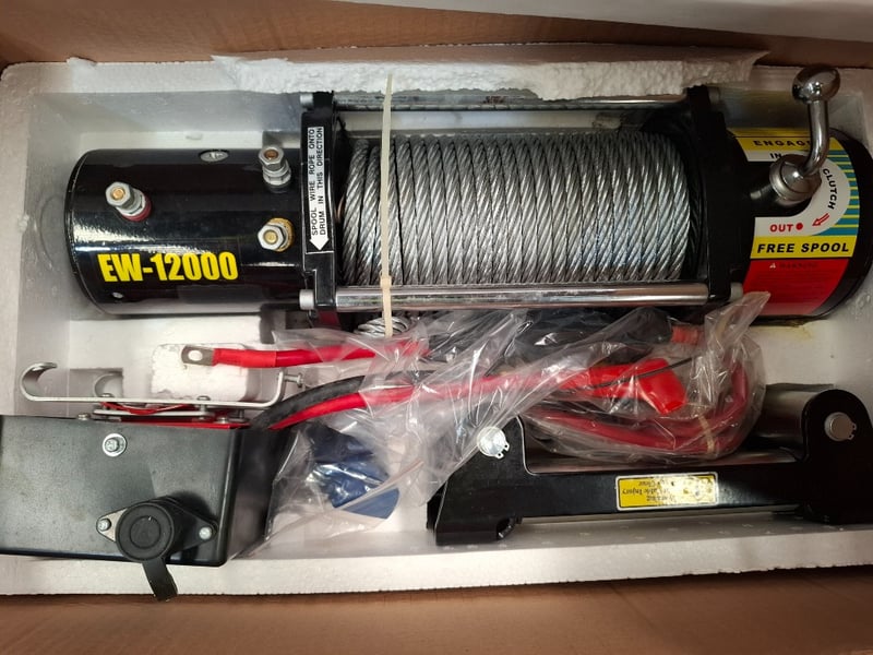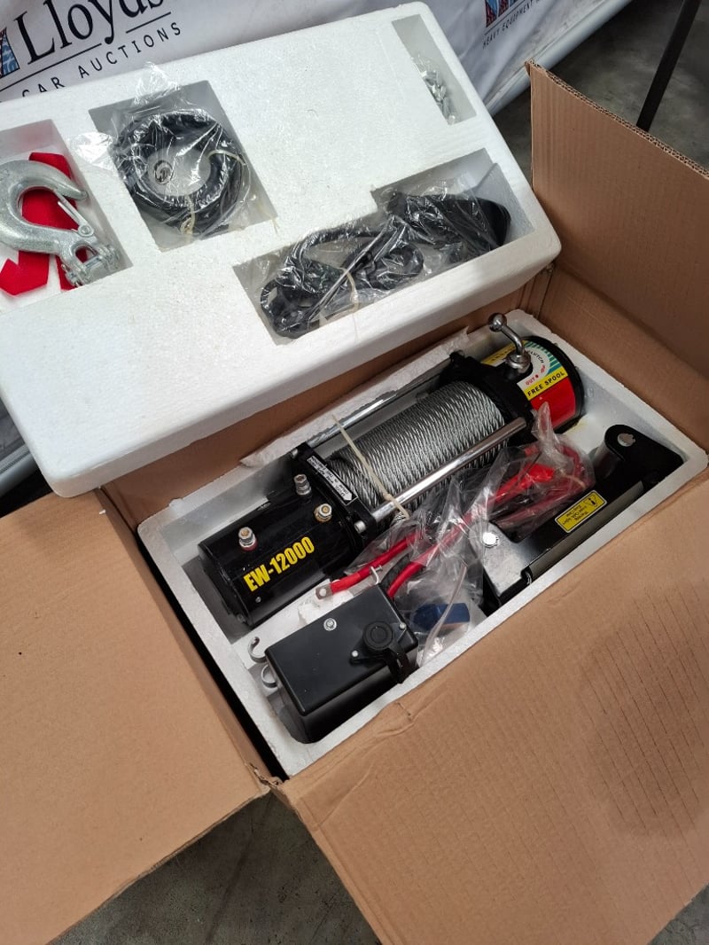 EW-1200 ELECTRIC WINCHItem Size: Height: 16cm, Width: 51cm, Depth: 16cm, Weight: 36KgRated Approx For 12,000 Pounds (Approx. 5,443 Kg) Of Line Pull. Power: Usually Operates On A 12V Dc Power Supply, Suitable For Vehicle Batteries. Rope Type: Steel CableIncludes AccessoriesCondition: Good - Refer To Images585785+2