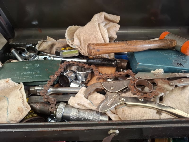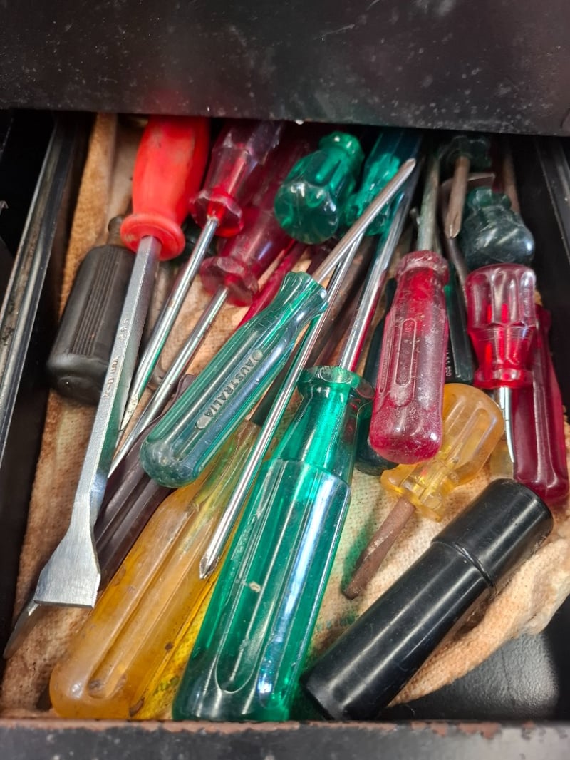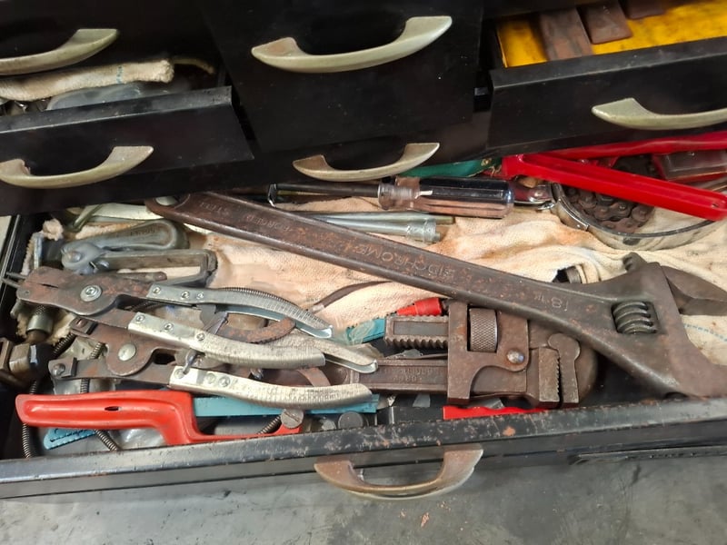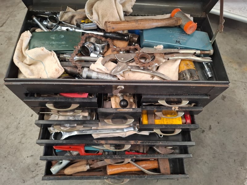 10 Drawers Metal John Deer Box Tools, Including Hand Tools