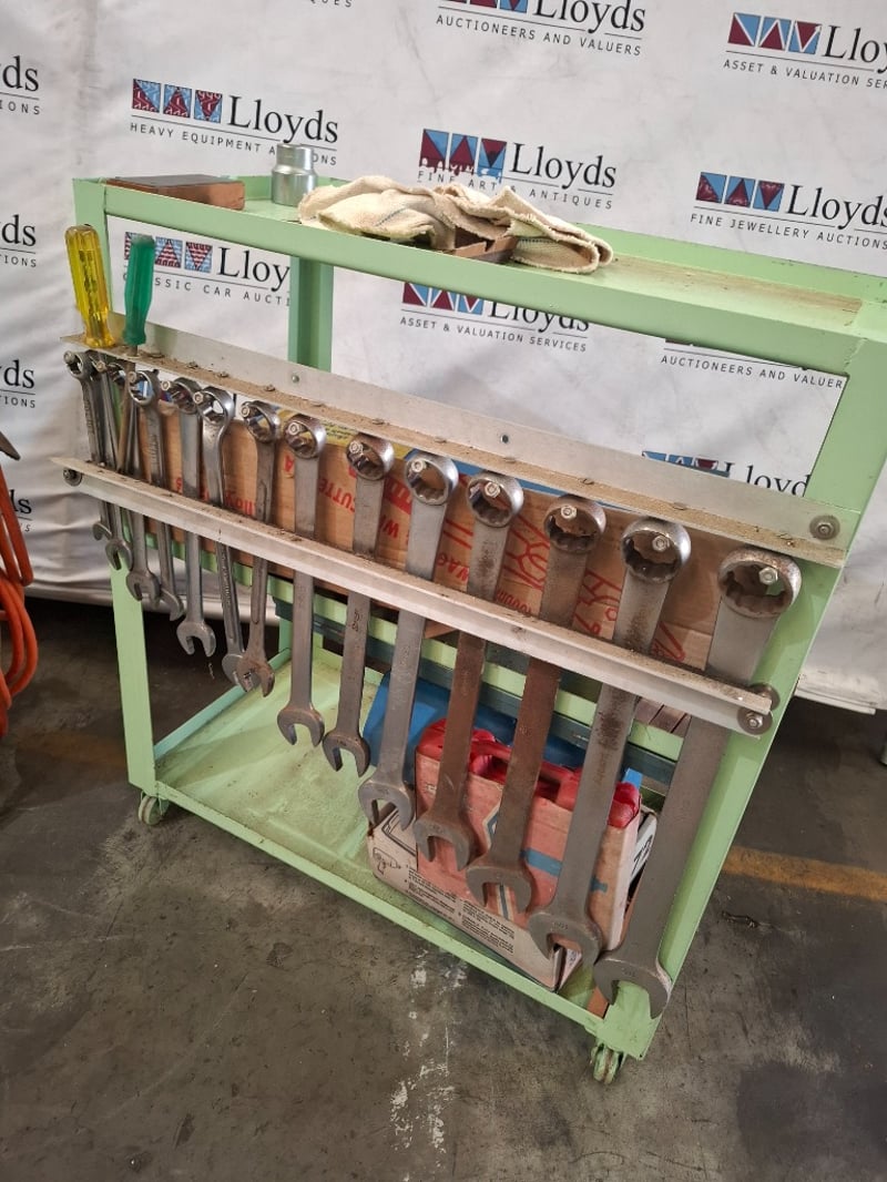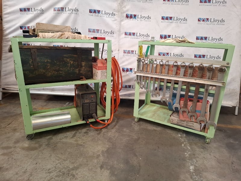 2 X WORKING TOOLS TROLLEY, WITH TOOLSItem Size: Height: 84cm, Width: 75cm, Depth: 46cm, Weight: 90KgIncludes Spanners, Metal Roll Welder, And More Hand ToolsCondition: Fair - Refer To Images585785+18