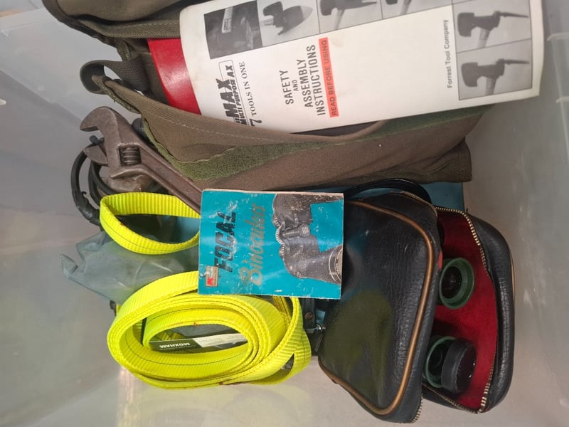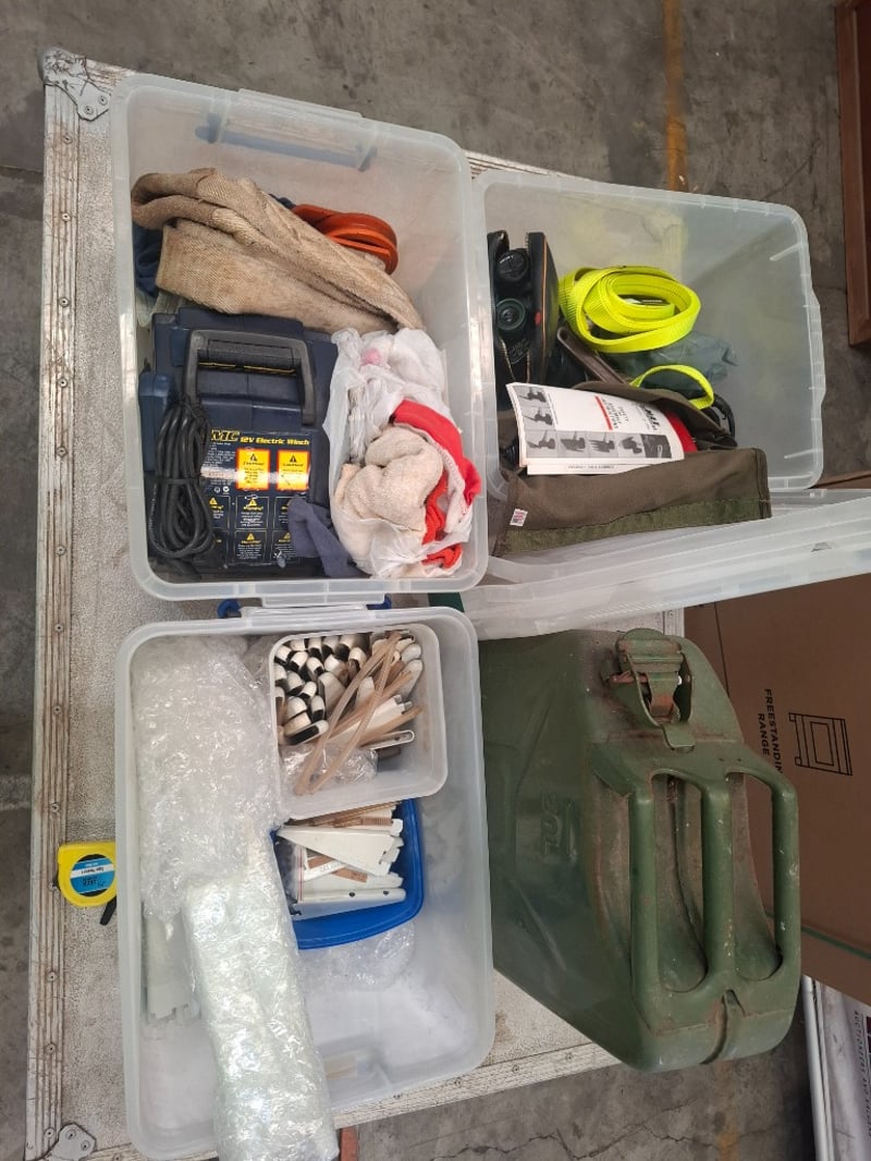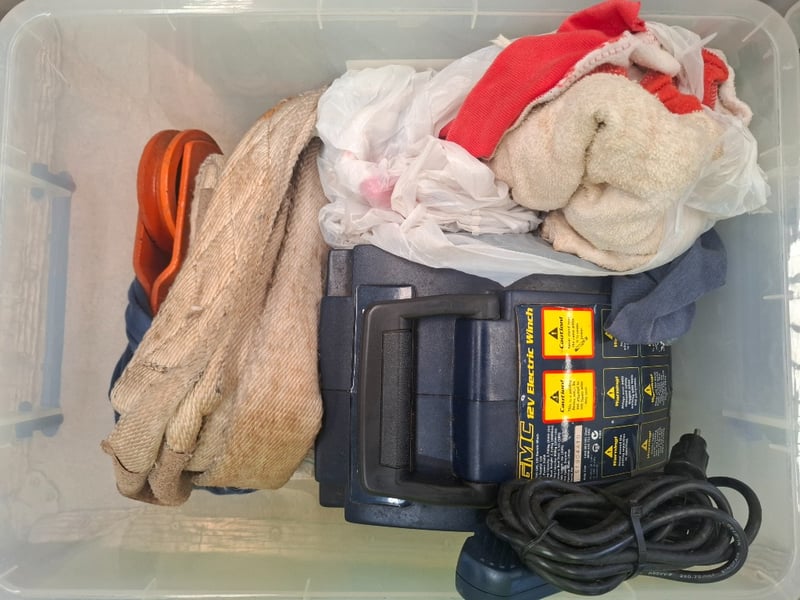 Includes 12V Electric Winch, Lifting Straps, Focal Binoculars, 7In1 Multi Purpose Ax, Shelving Parts, 20 Litre Jerry Can.