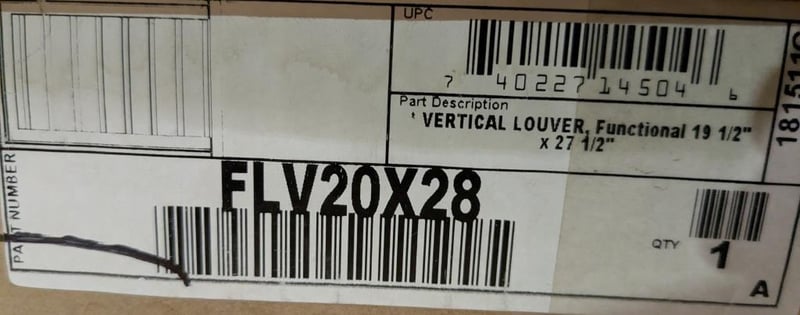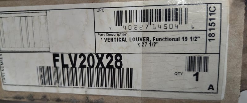 - FLV20X28 Vertical Louver, Functional 19 1/2" X 27 1/2"