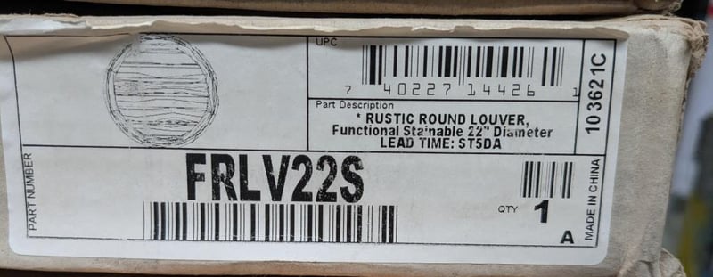 - FRLV22S Rustic Round Louver, Functional Stainable 22" Diameter