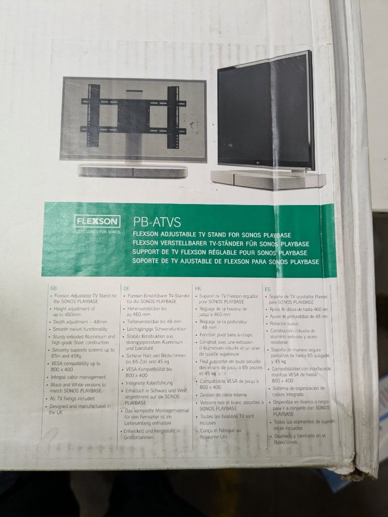 PB-ATVS Flexison-Adjustable TV Stand for Sonos Playbase.NOTE: Manual included.Sold as a lot.