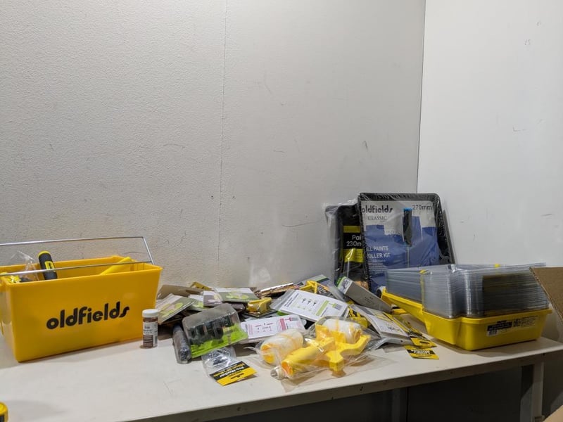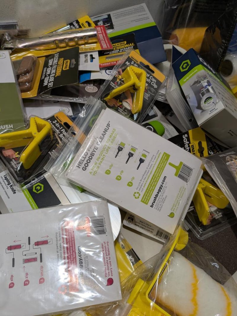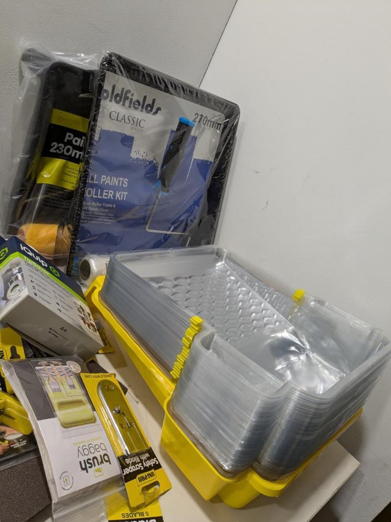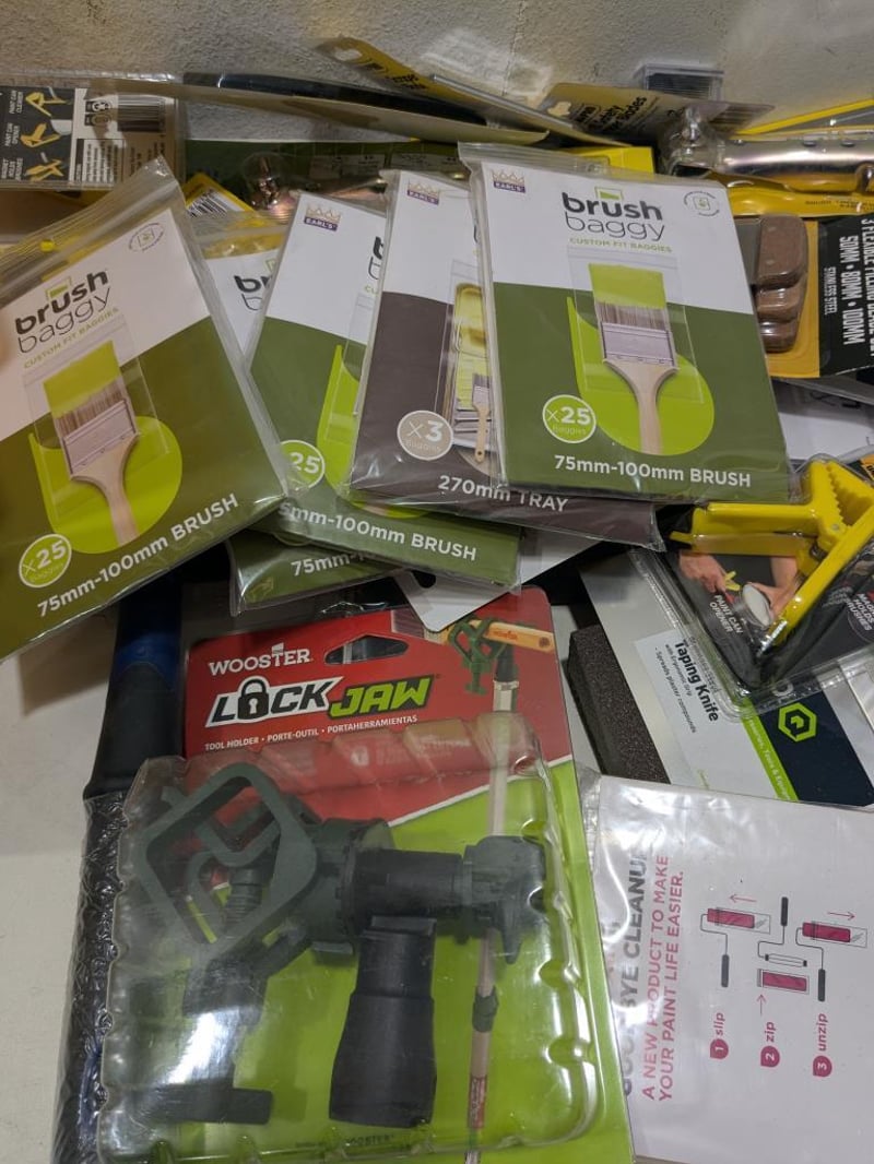 Assorted paint accessories include roller kit, custom fit baggies, and more...Sold as a lot.