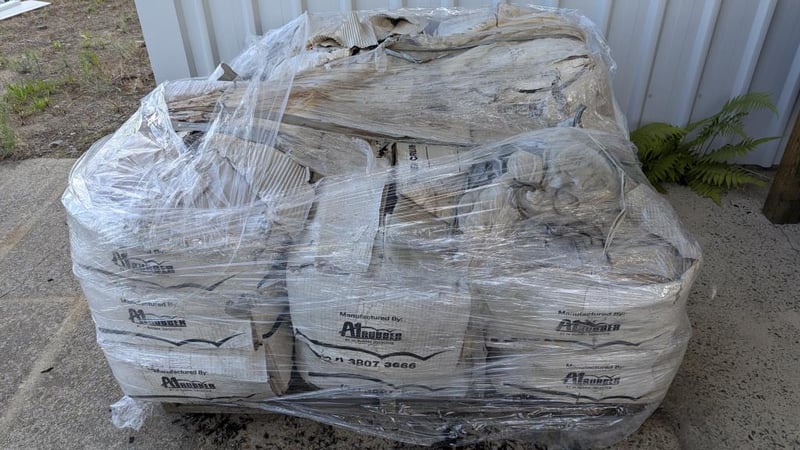 UNRESERVED Rubber Chip For Soft Fall Matting, Shredded Soft Rubber, Black Colour, Bulk Lot, Approx 340kg on Pallet