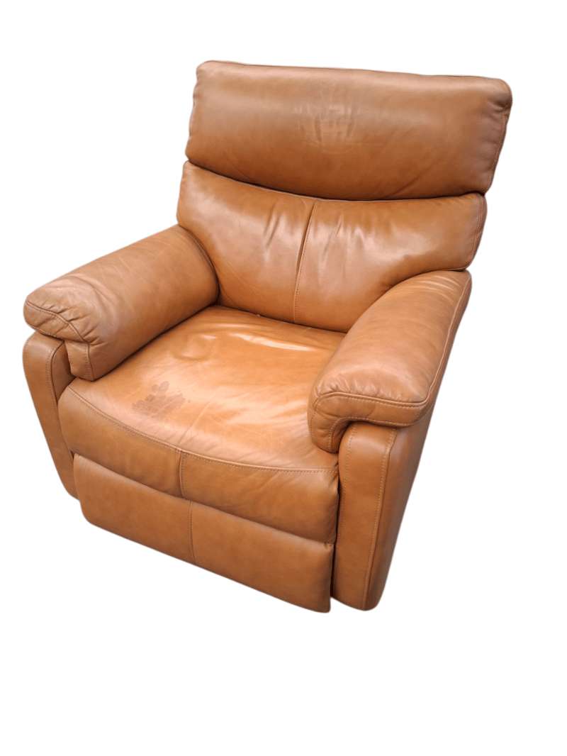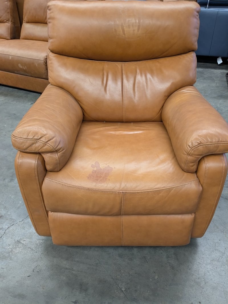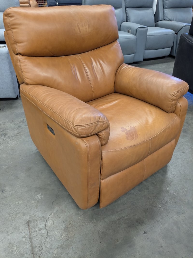 Electric Recliner Armchair, Caramel Leather Dimension: 82cm(W) x 94cm(D) x 100cm(H)Note: Upholstery Peeling, Marks throughout, Power Cord Not Included.