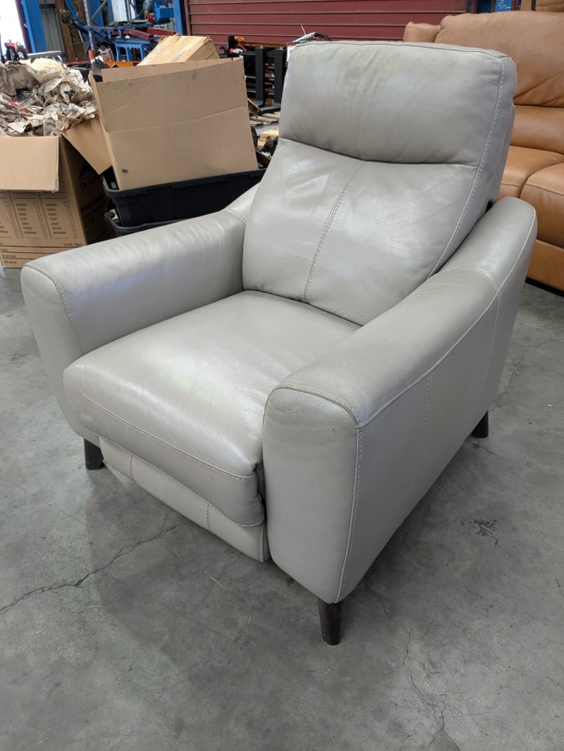 Electric Leather Recliner, Light Grey