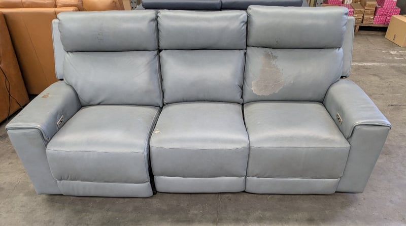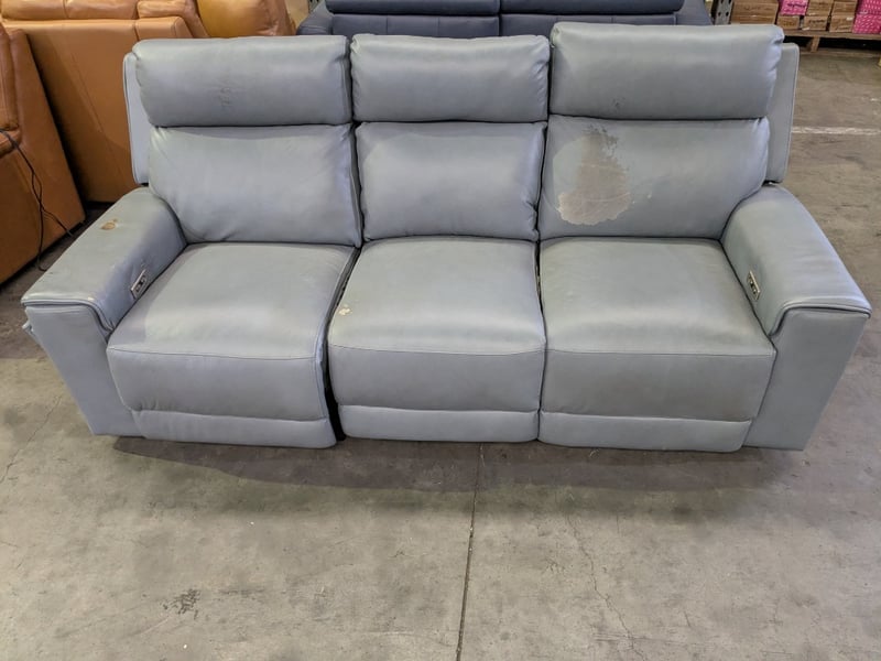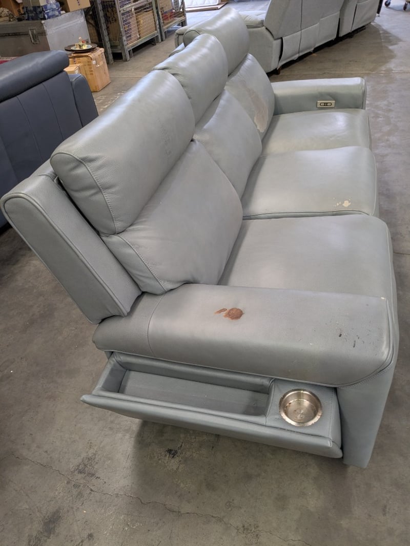 3 Seater Electric Recliner, Pale Light Blue Leather