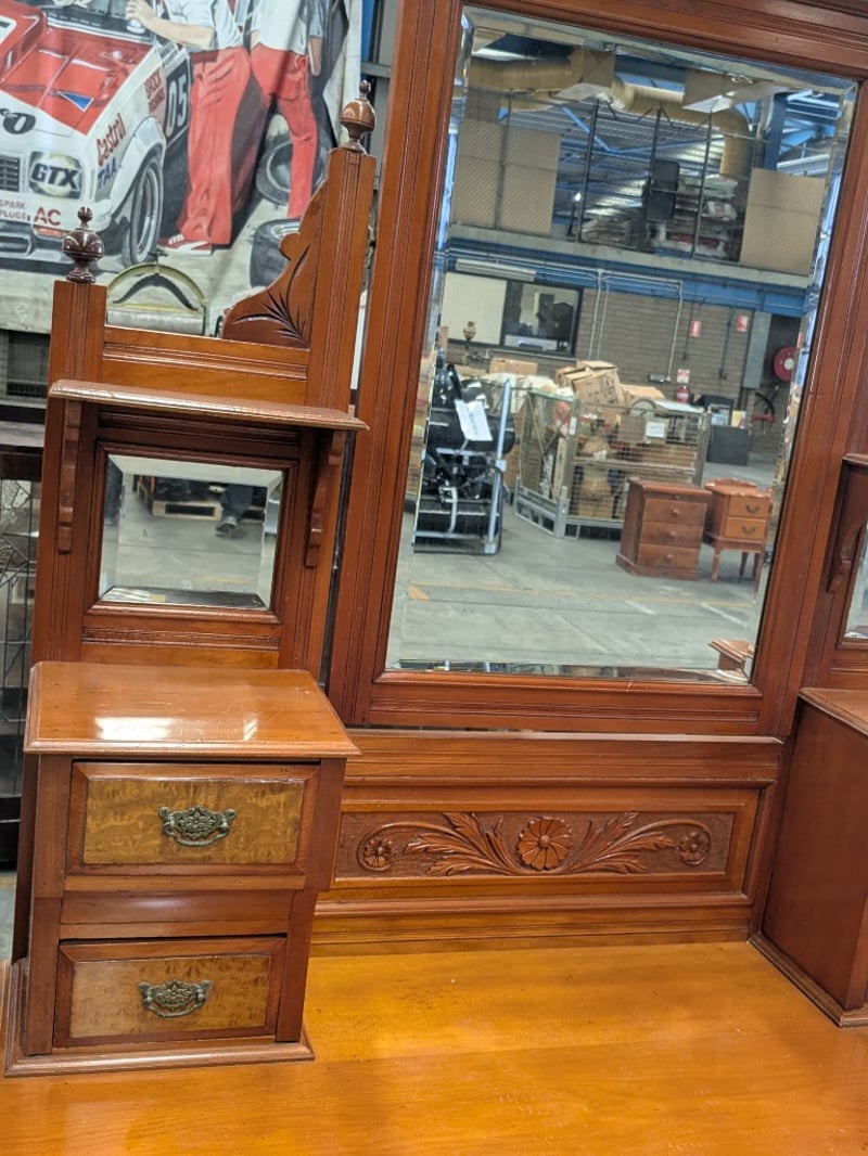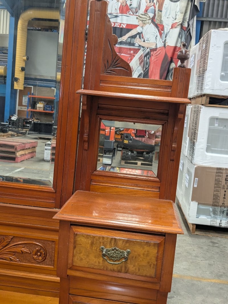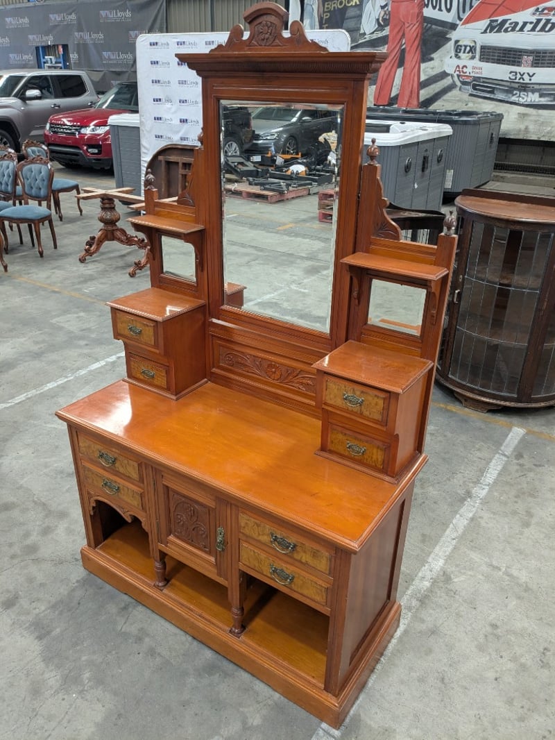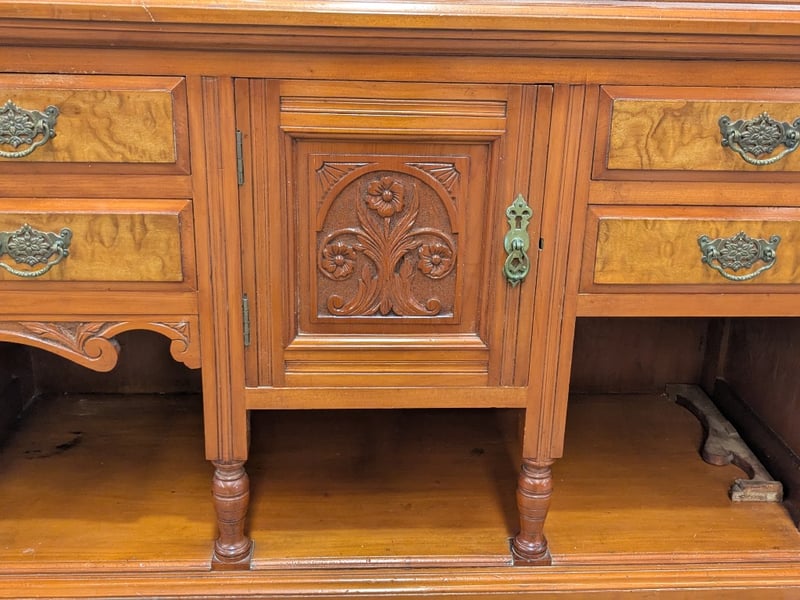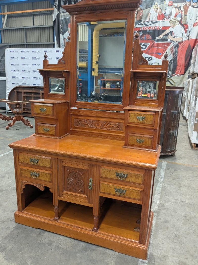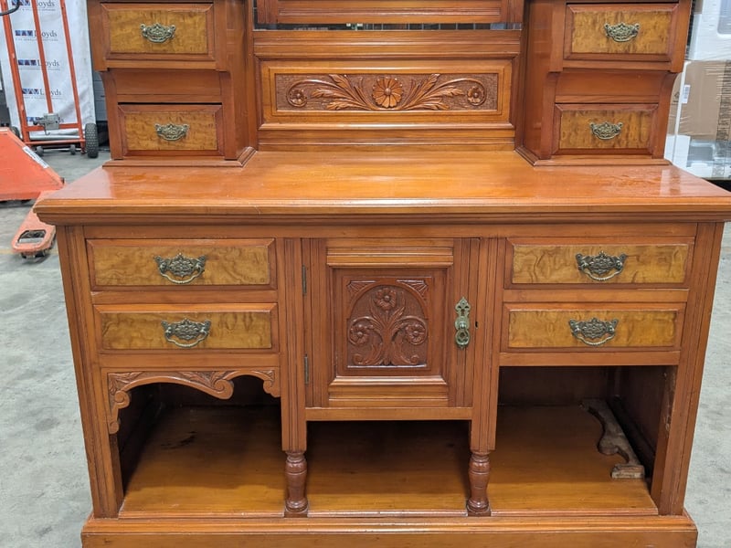 Solid Timber Dresser With 8 Drawers And A Center Cupboard. Light Stain.