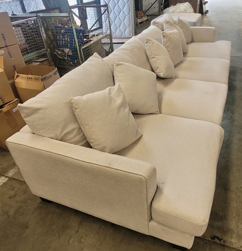 Daytona 3pc suite with OttomanCreamDimensionsLounge: L 370cm x H 67cmx D 130cmOttoman: L 130cm x W 125cm x H 50cm