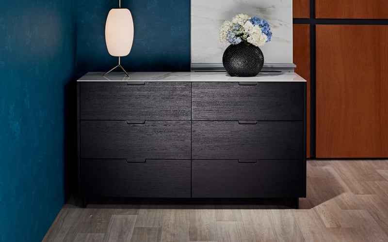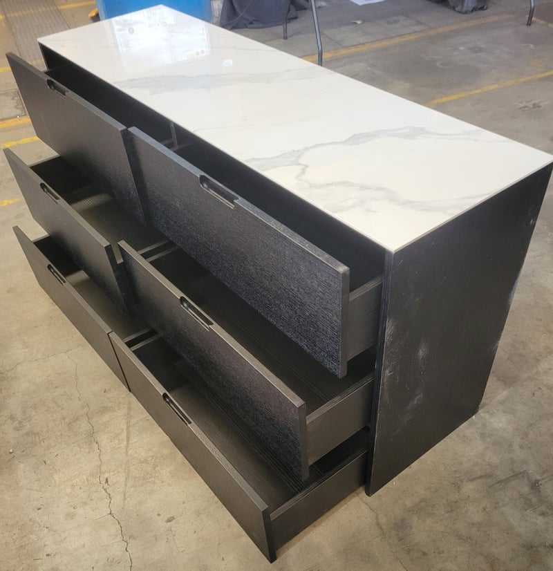 RRP $ 2590 , Dresser black oak , ceramic top , 6 drawers,