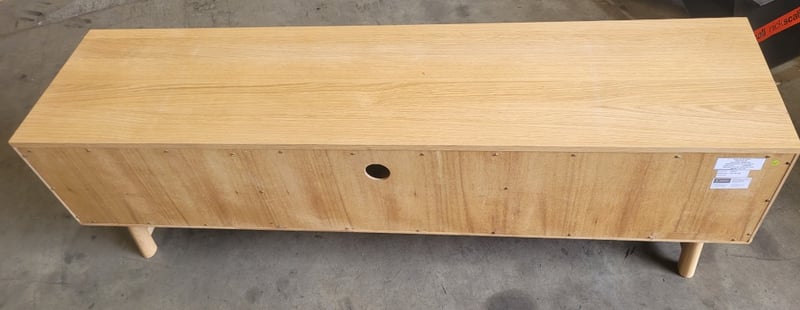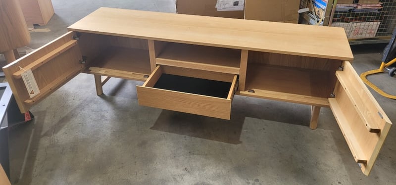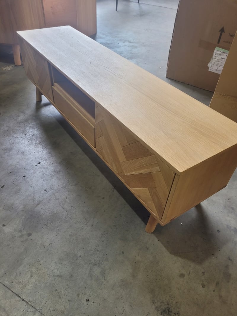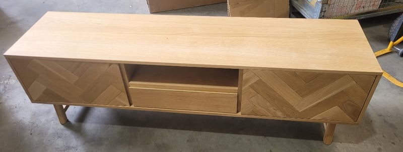 Oak timber tv unit Herringbone pattern , two doors, one drawer