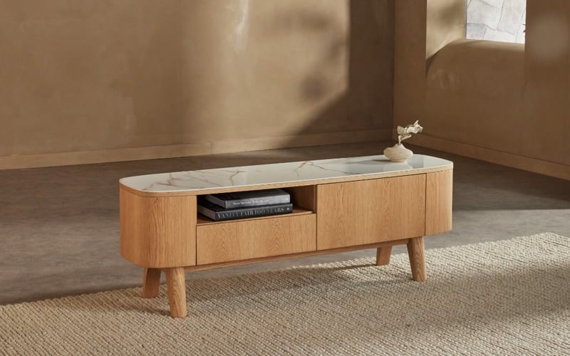 RRP$ 1590, Entertainment Unit Oak with Ceramic top. 160cm size