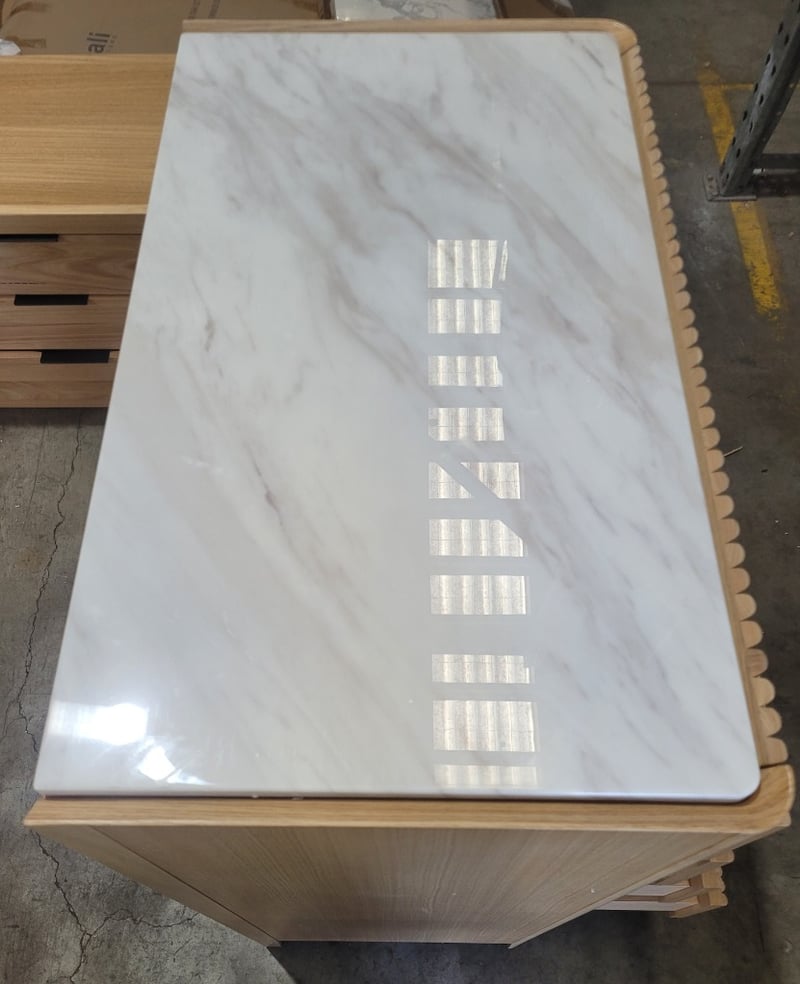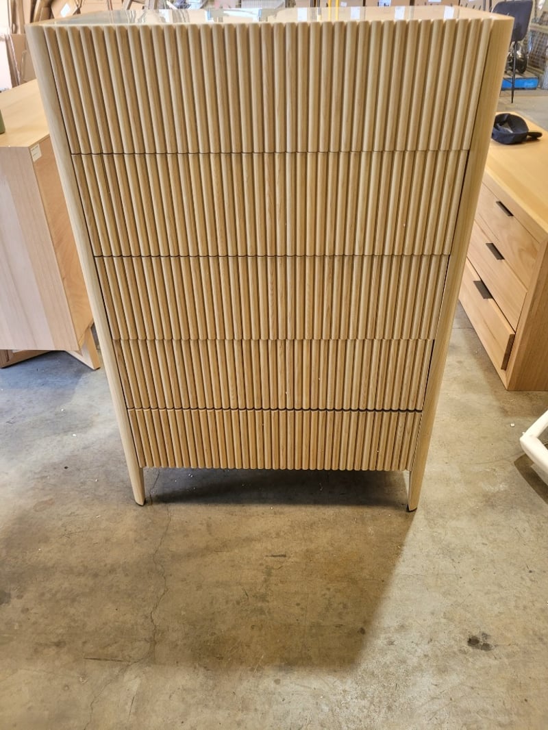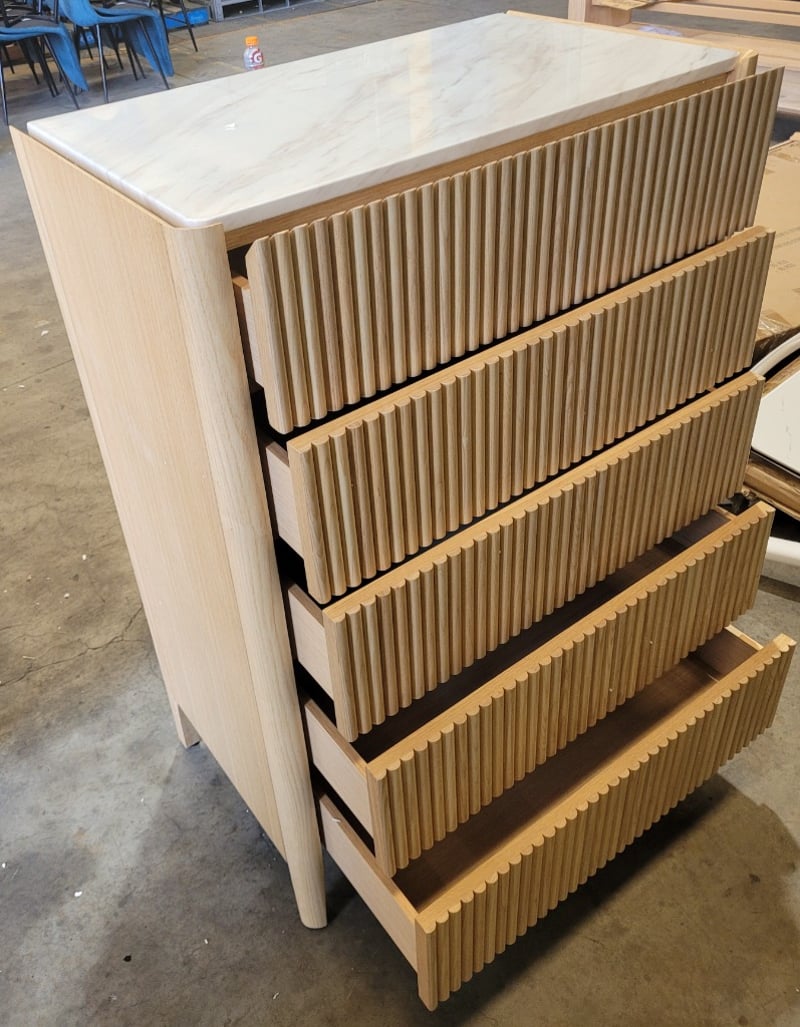 RRP $ 1990 , Tallboy Oak Frame with 18mm High Density Marble and Premium Marble Film, 5 drawers Dimensions: 80 cm ( W) x 46cm ( D) x 116 cm ( H)Note: some drawers jammed