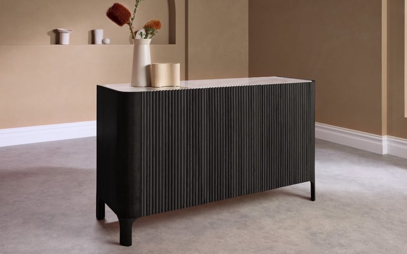 RRP $ 1990 Buffet Black Washed oak. High density marble. Premium marble film