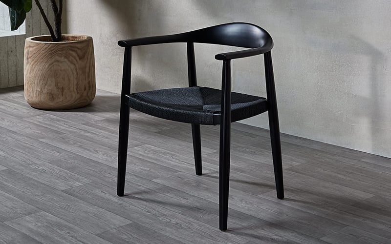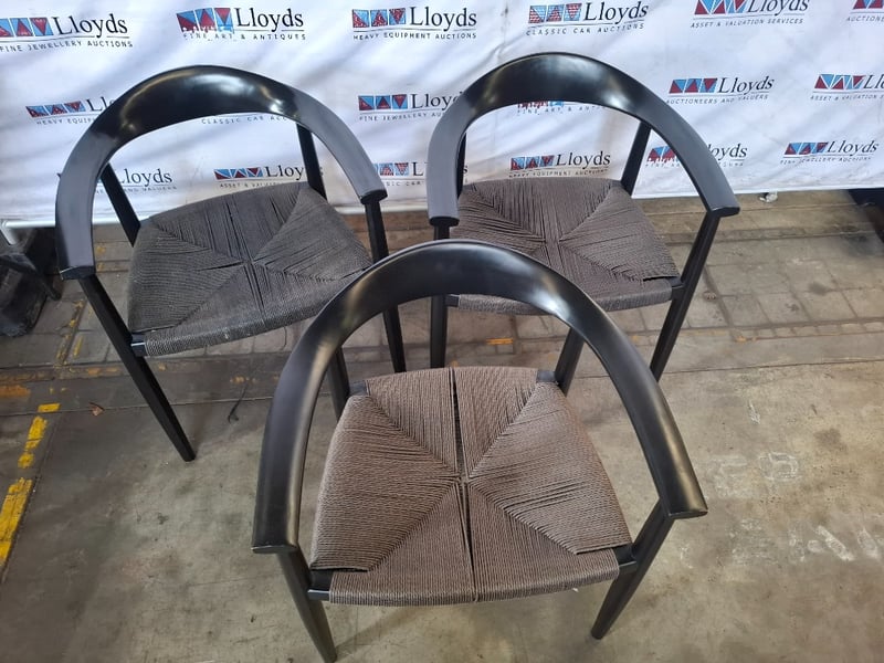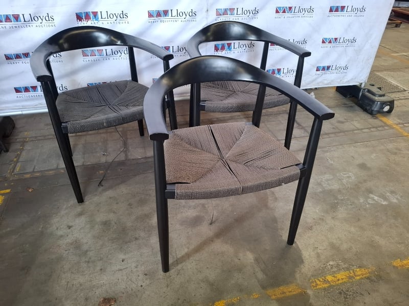 RRP $ 390/each. Dining Chair, Beech wood & weaved CordQty: 3Sold as lot Note: Sun fade visible top string, wear and tear