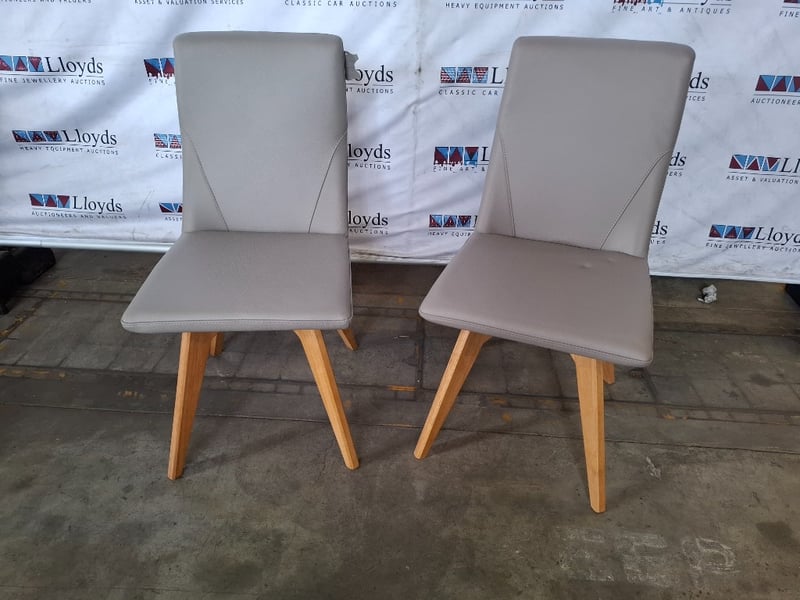 RRP, $299/ each, Dining Chair, light grey100% leather, natural finish timber legs