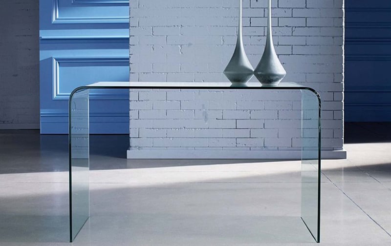 RRP $ 890 Console Table GlassDimensions: 120 cm ( W) x 40 cm ( D) x 75 cm ( H) Note: in original timbre crate