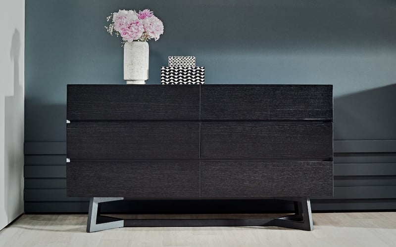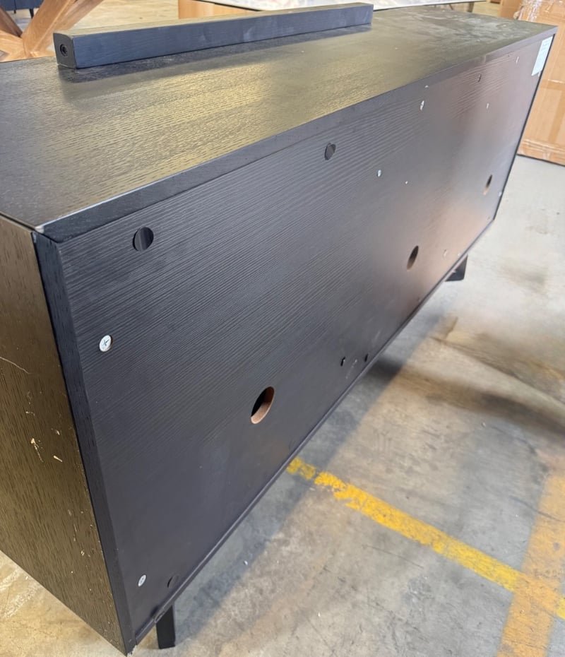 RRP $2,190 Dresser, Smoked OakDimension: 180cm (W) x 44cm (D) x 84cm(H)Note: Draw not aligned,Marks throughout, Accessories not included
