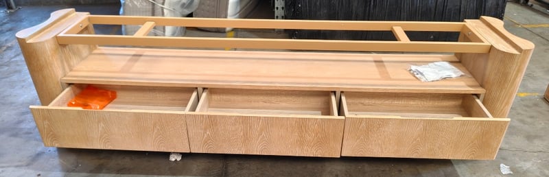 Entertainment Unit, White Washed Oak, Marble Top, Travertine Film*Note: does not come with top