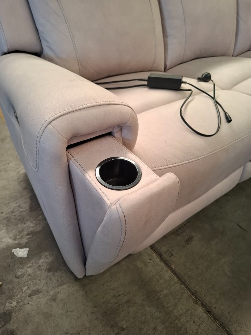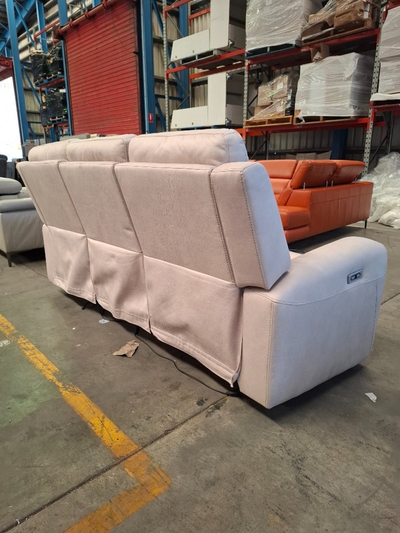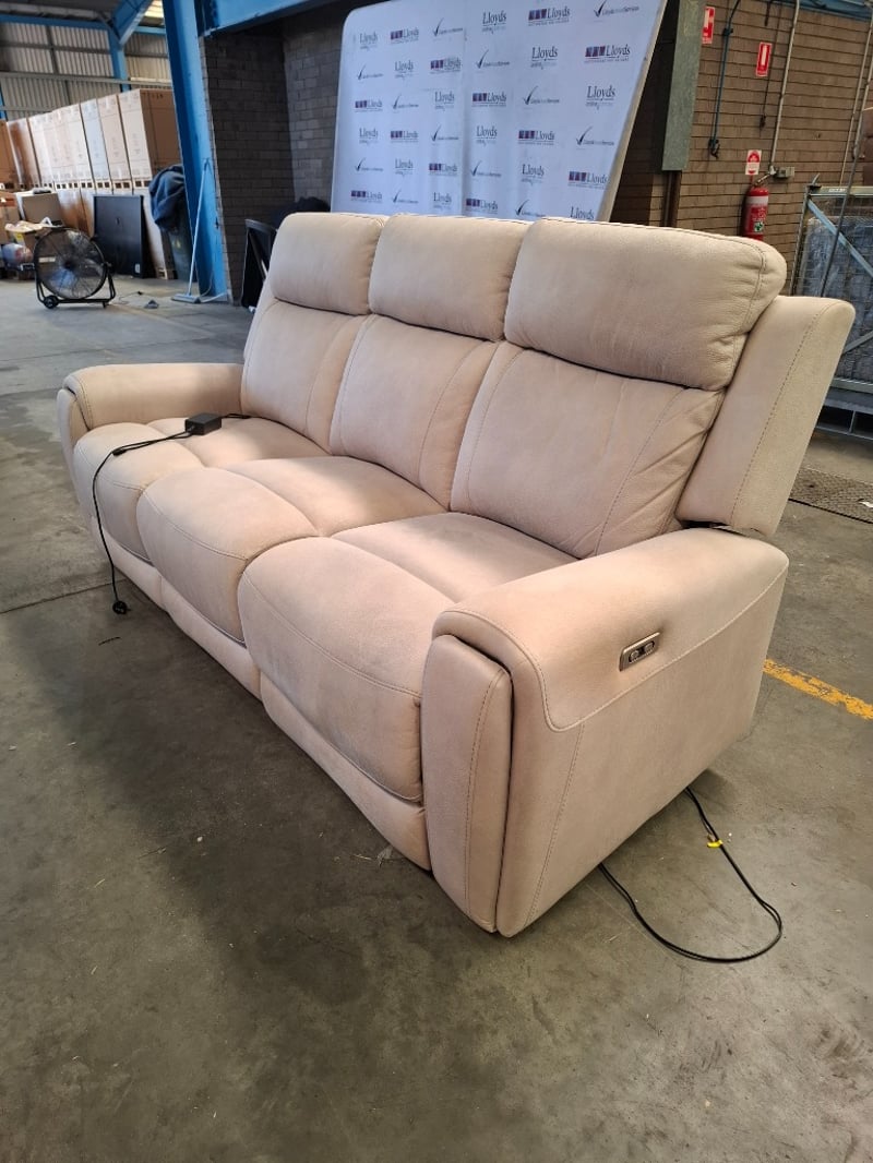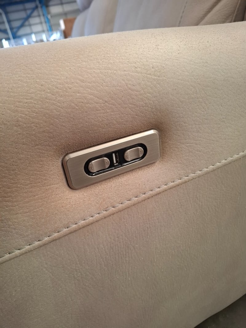 3 Seater Electric Recliner, Leather Upholstery, Colour: Beige Push Button Controls,