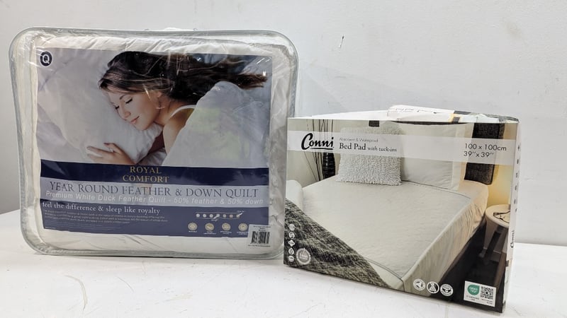 Feather and Down Quilt, Royal Comfort, Size Queen, Conni Bed Pad with Tuck Ins, Quantity 2