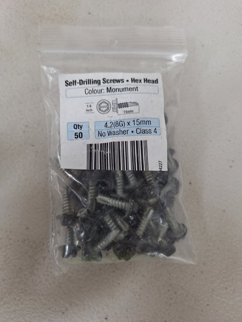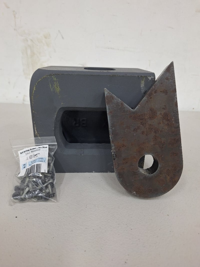 Heavy-duty Metal Bracket, A Large Metal Cutting Tool, & A Bag of Self-Drilling Hex Head ScrewsSOLD AS LOT