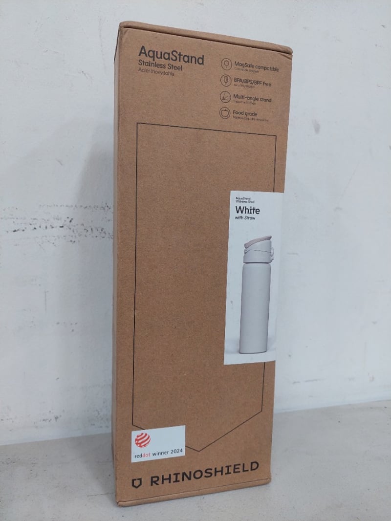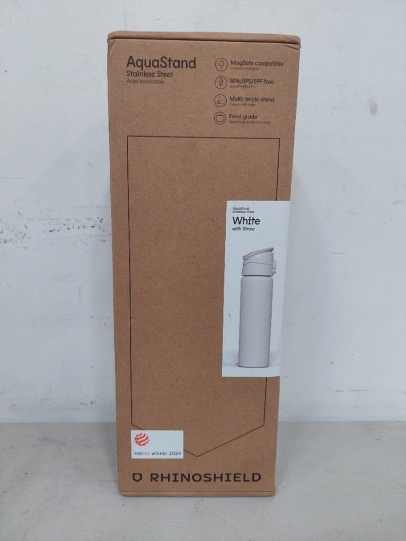 AquaStand, Rhinoshield, Stainless Steel, Acier Inoxydable, White, With Straw.