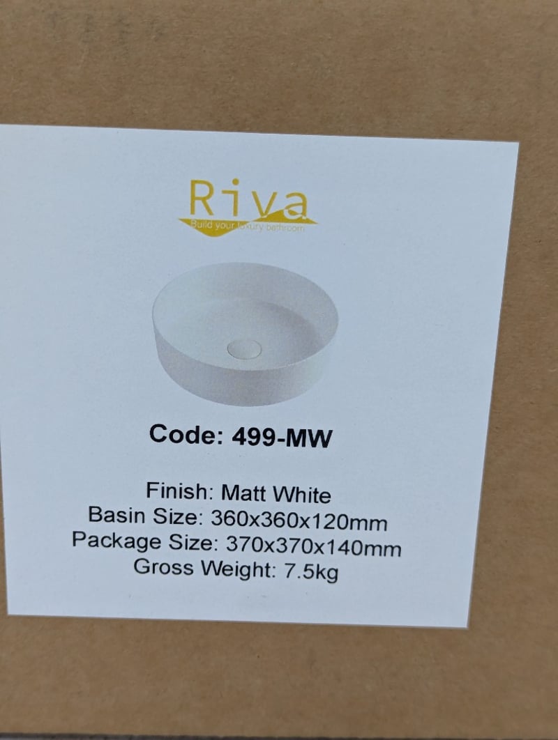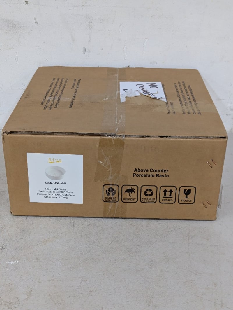 Above Counter Porcelain Basin, Matt White, Model: 499-MWDimensions: H 120mm x W 360mm x D 360mm