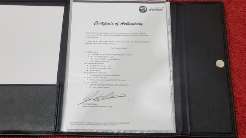 The HSV W1 owner’s compendium, full books, and all keys are included.