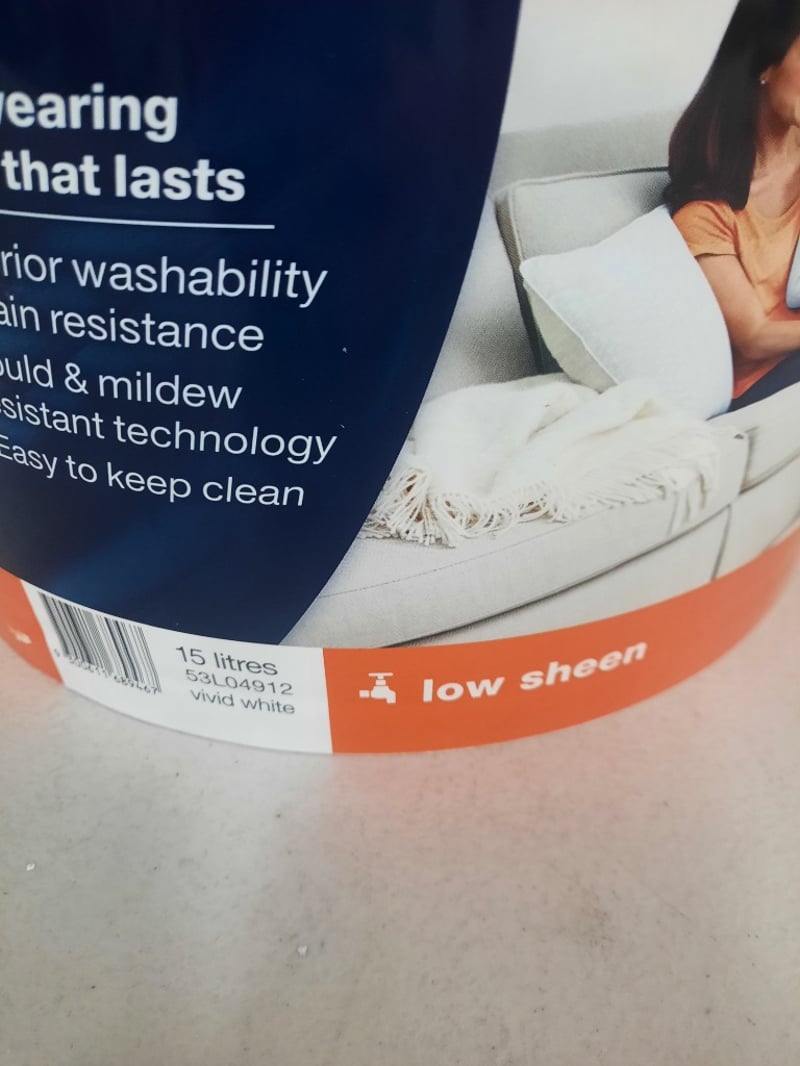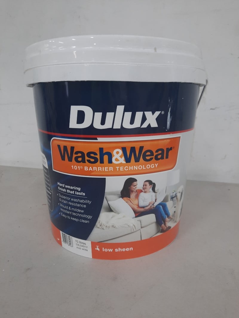 Paint, Dulux Wash and Wear. Low Sheen Vivid White 15 LitreBID PER LITRE MUST TAKE 15 LITRES