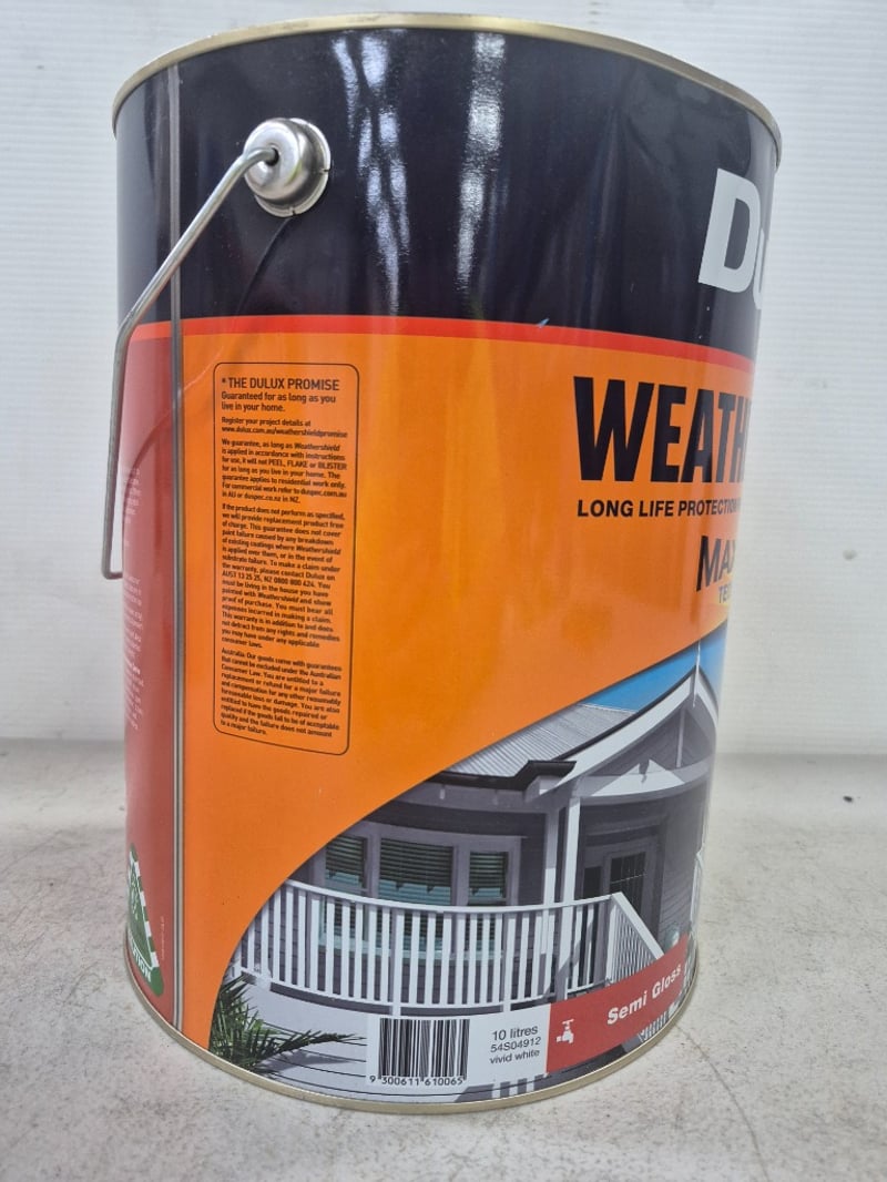 Paint: Dulux - Weathershield Maxiflex Technology - Semi Gloss - Vivid White - 10LBID PER LITRE MUST TAKE 10 LITRES