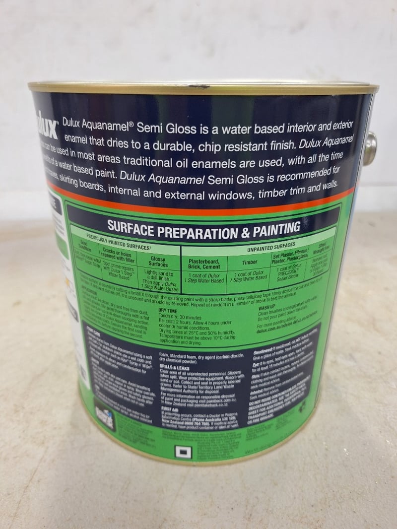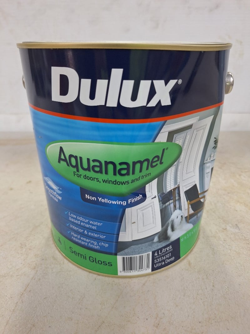 Paint, Dulux Aquanamel Non Yellowing Finish, Semi Gloss, Ultra Deep 4LBID PER LITRE, MUST TAKE 4 LITRES