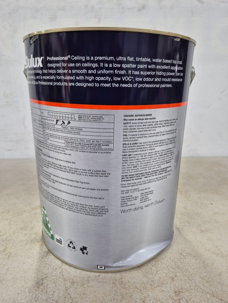 Paint, Dulux Professional Ceiling, Flat White 10LBID PER LITRE MUST TAKE 10 LITRES