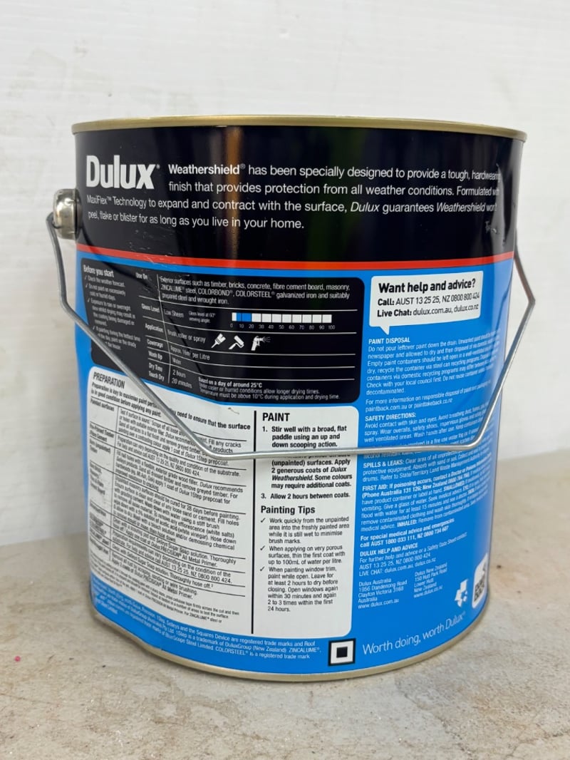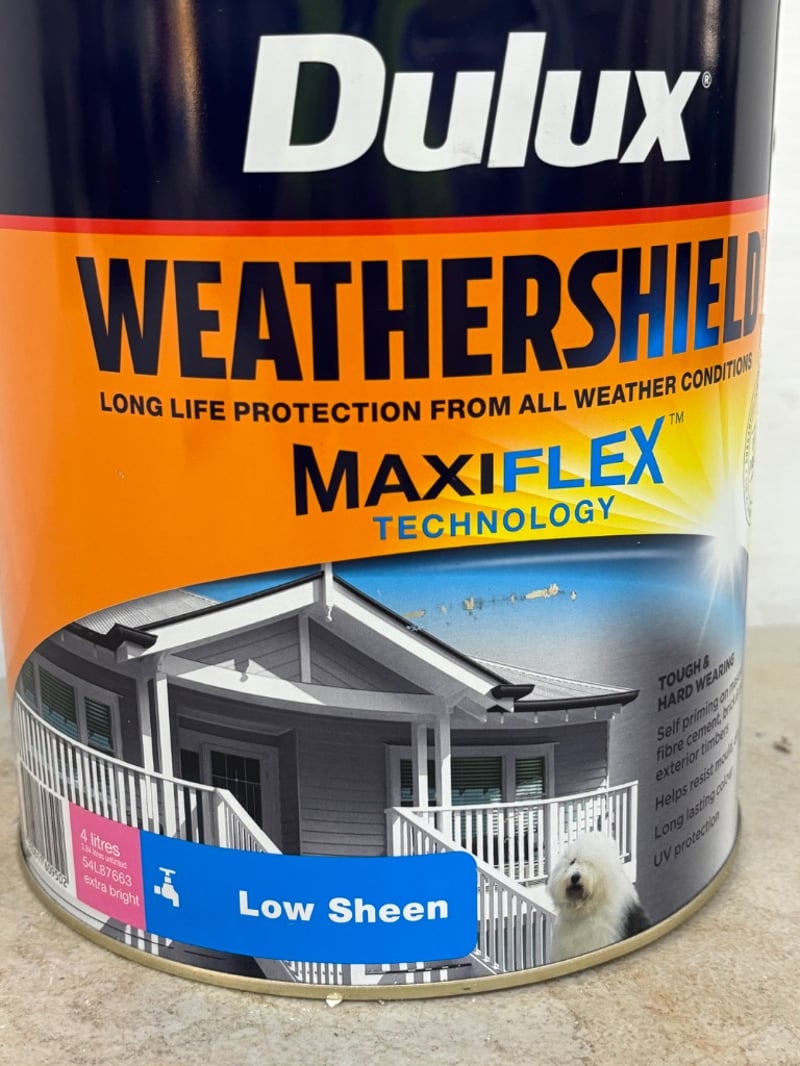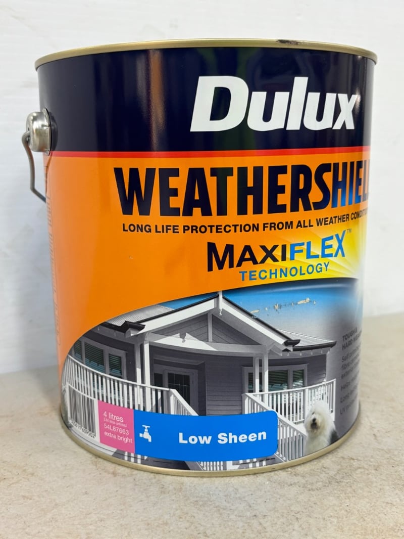Paint, Dulux Weathershield Maxiflex Technology, Low Sheen, Extra Bright, 4LBID PER LITRE MUST TAKE 4 LITRES