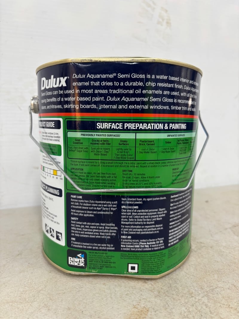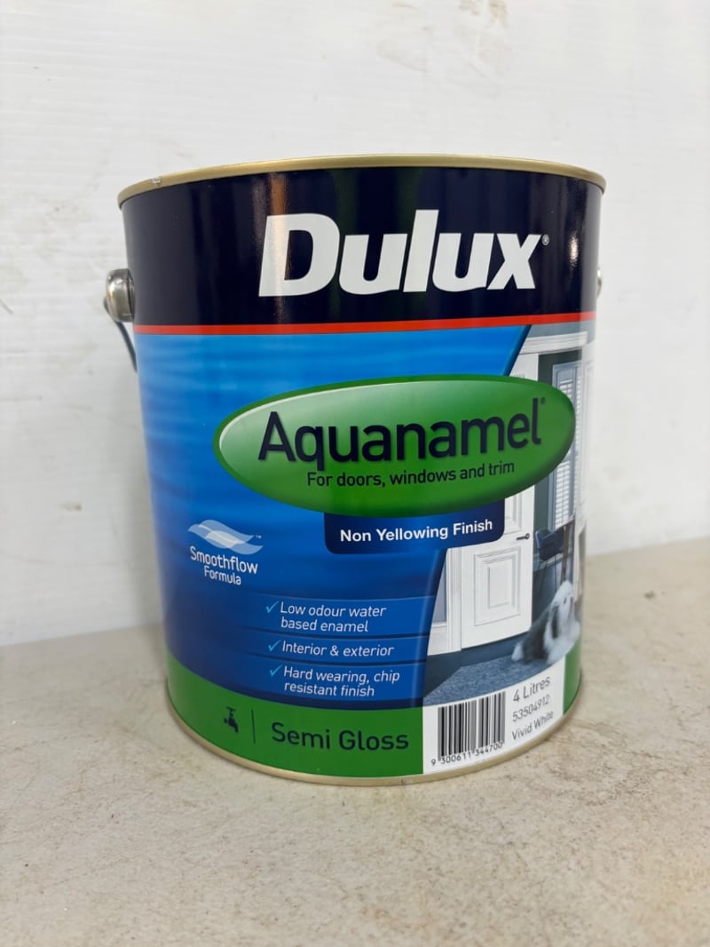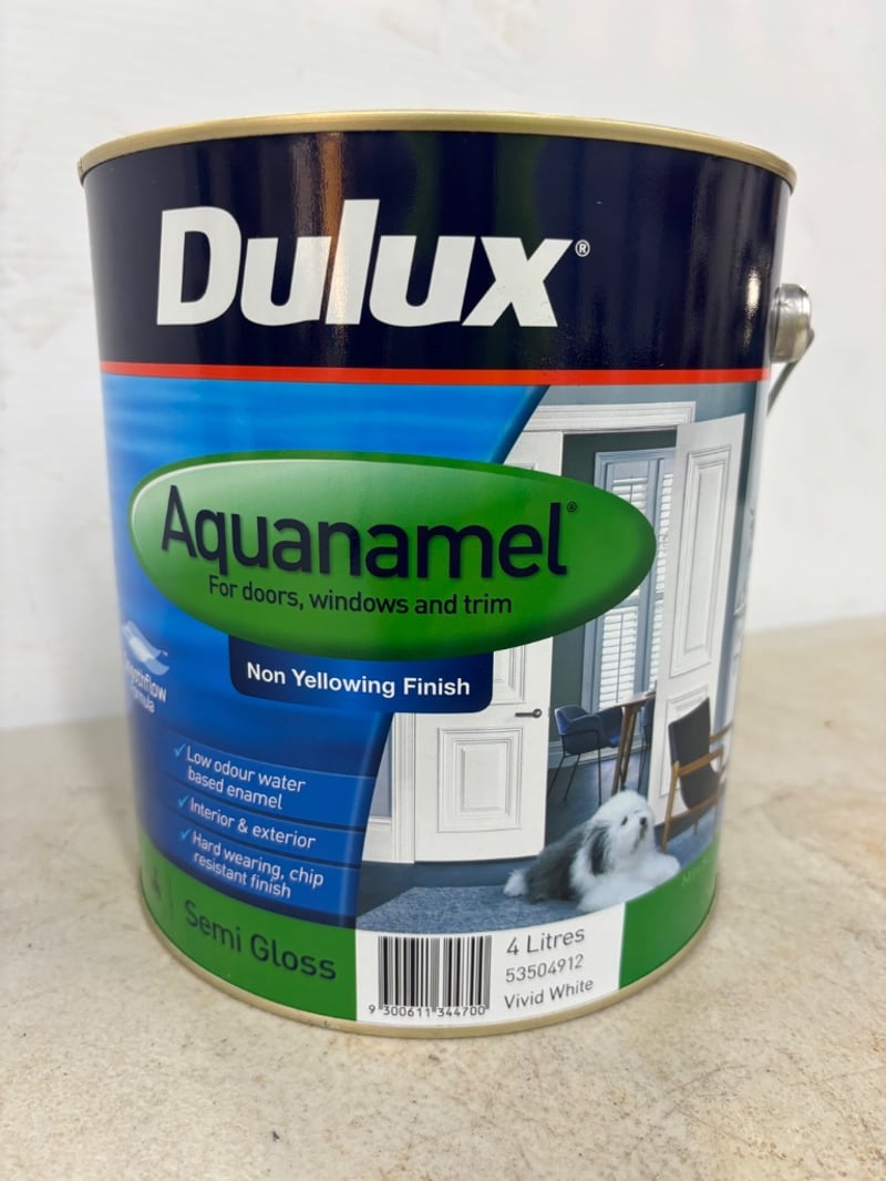 Paint, Dulux Aquanamel, Non Yellowing Finish, Semi Gloss, Vivid White 4L