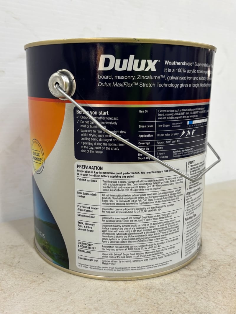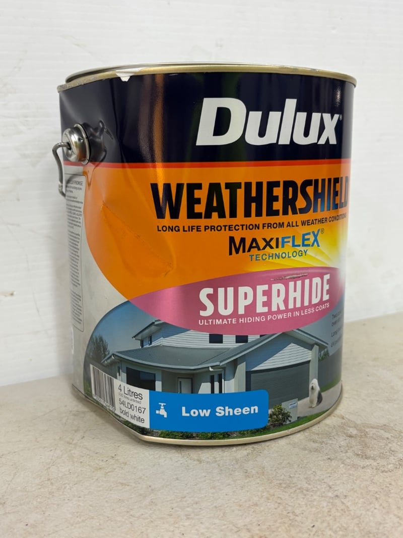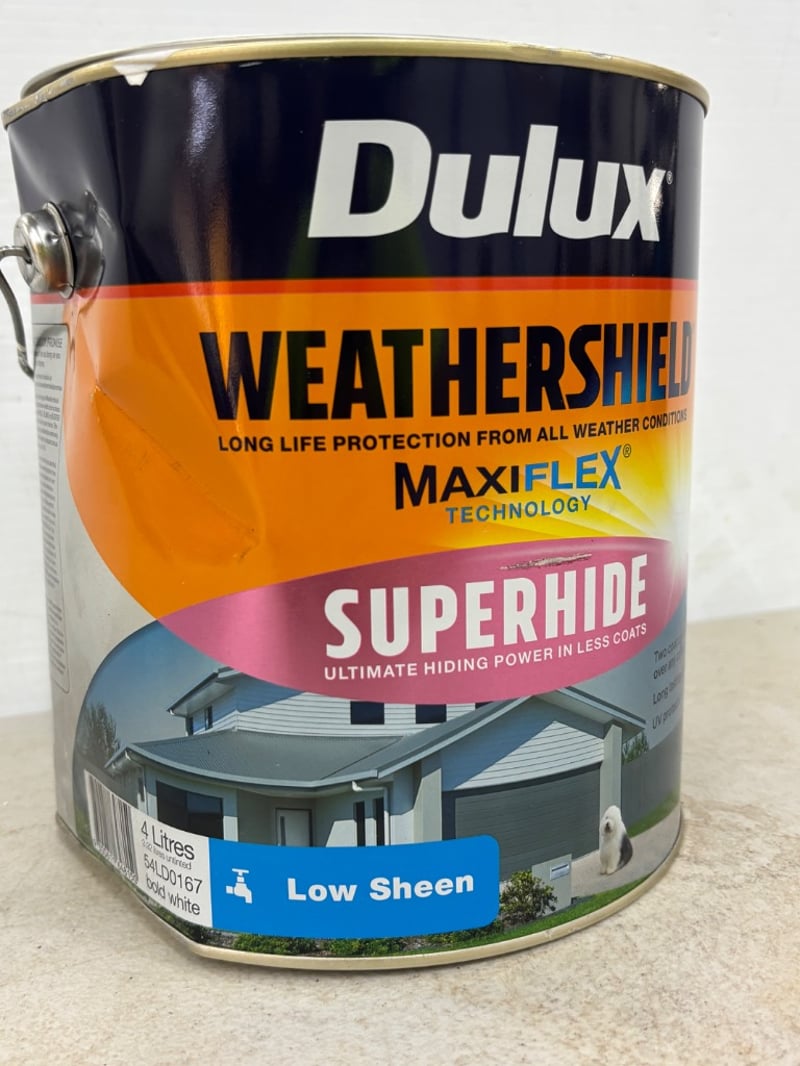 Paint, Dulux Weathershield, Maxiflex Technology, Superhide, Low Sheen, Bold WhiteBID PER LITRE MUST TAKE 4 LITRES
