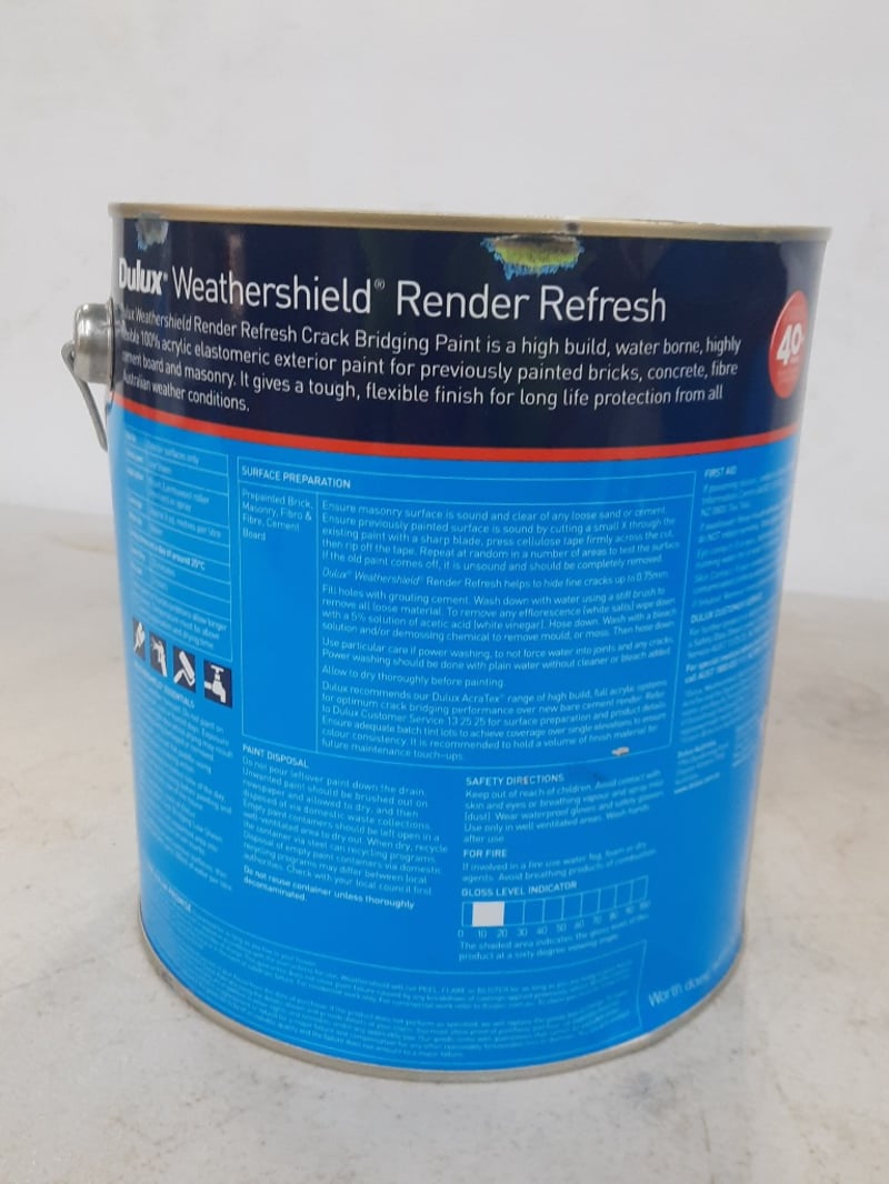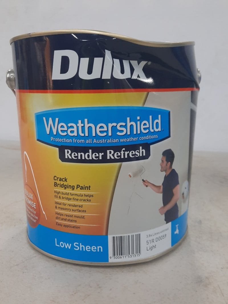 Paint, Dulux Weathershield Render Refresh Low Sheen Untinted 4 Litres