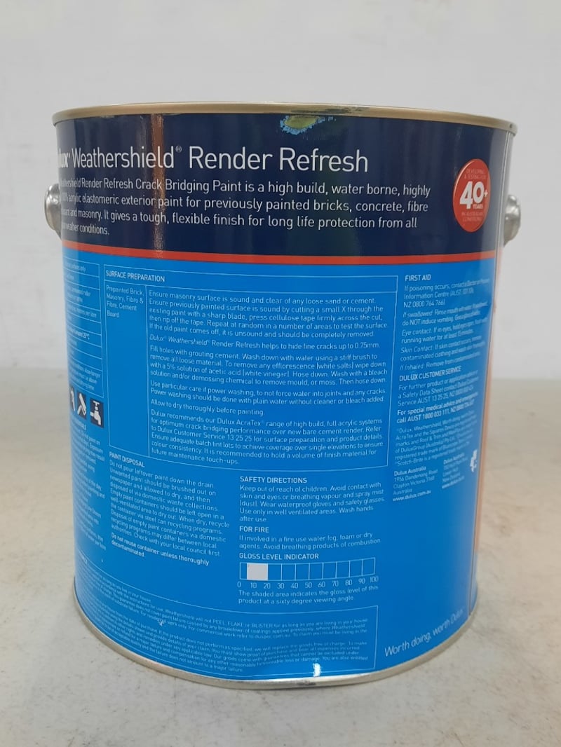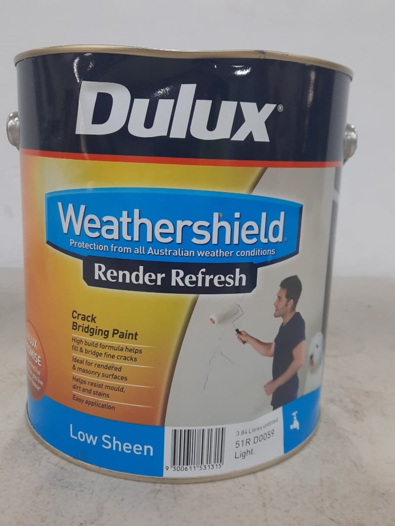 Paint, Dulux Weathershield Render Refresh Low Sheen Untinted 4 Litres