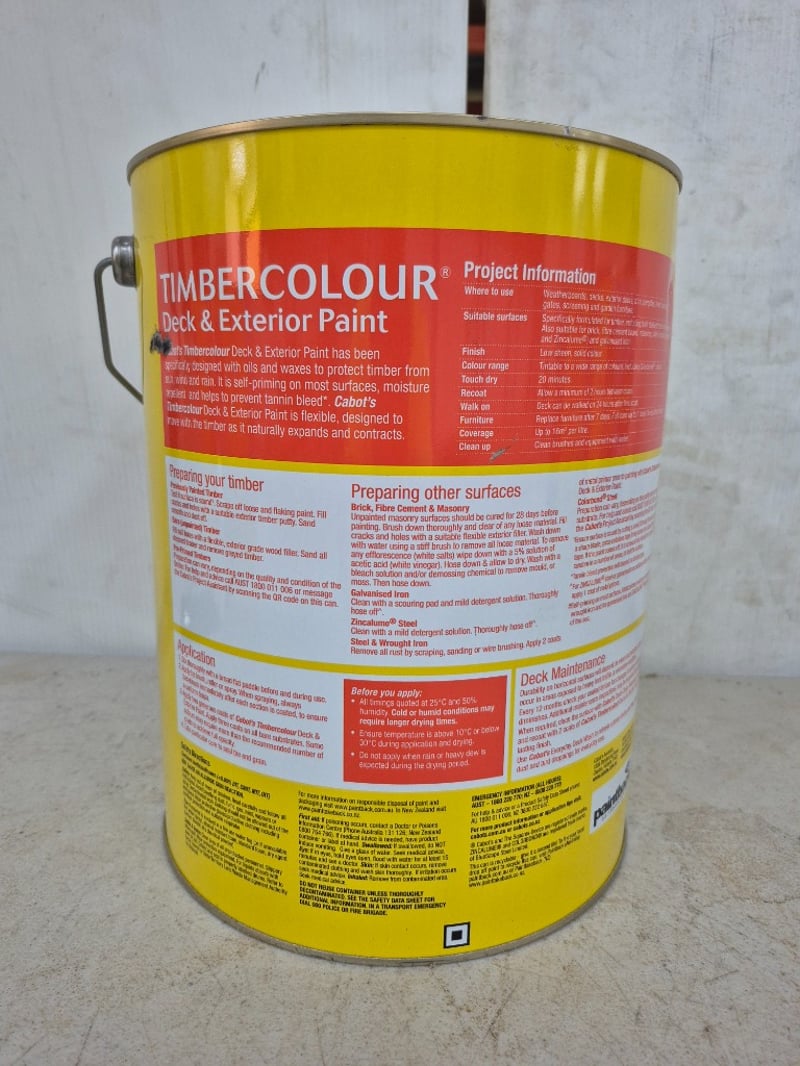 Paint, Cabots, Timbercolour Deck & Exterior, Low sheen, Extra Bright, 10LBID PER LITRE, MUST TAKE 10 LITRES