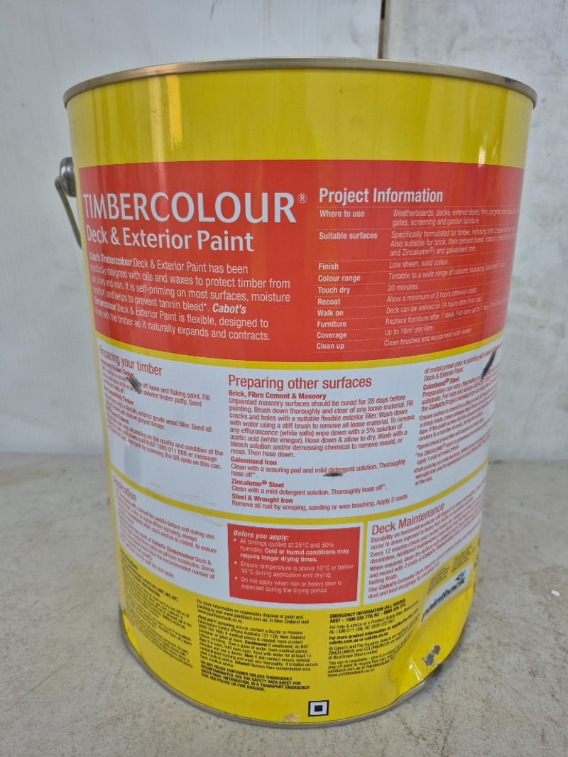 Paint, Cabots, Timbercolour Deck & Exterior, Low sheen, Deep, 10L